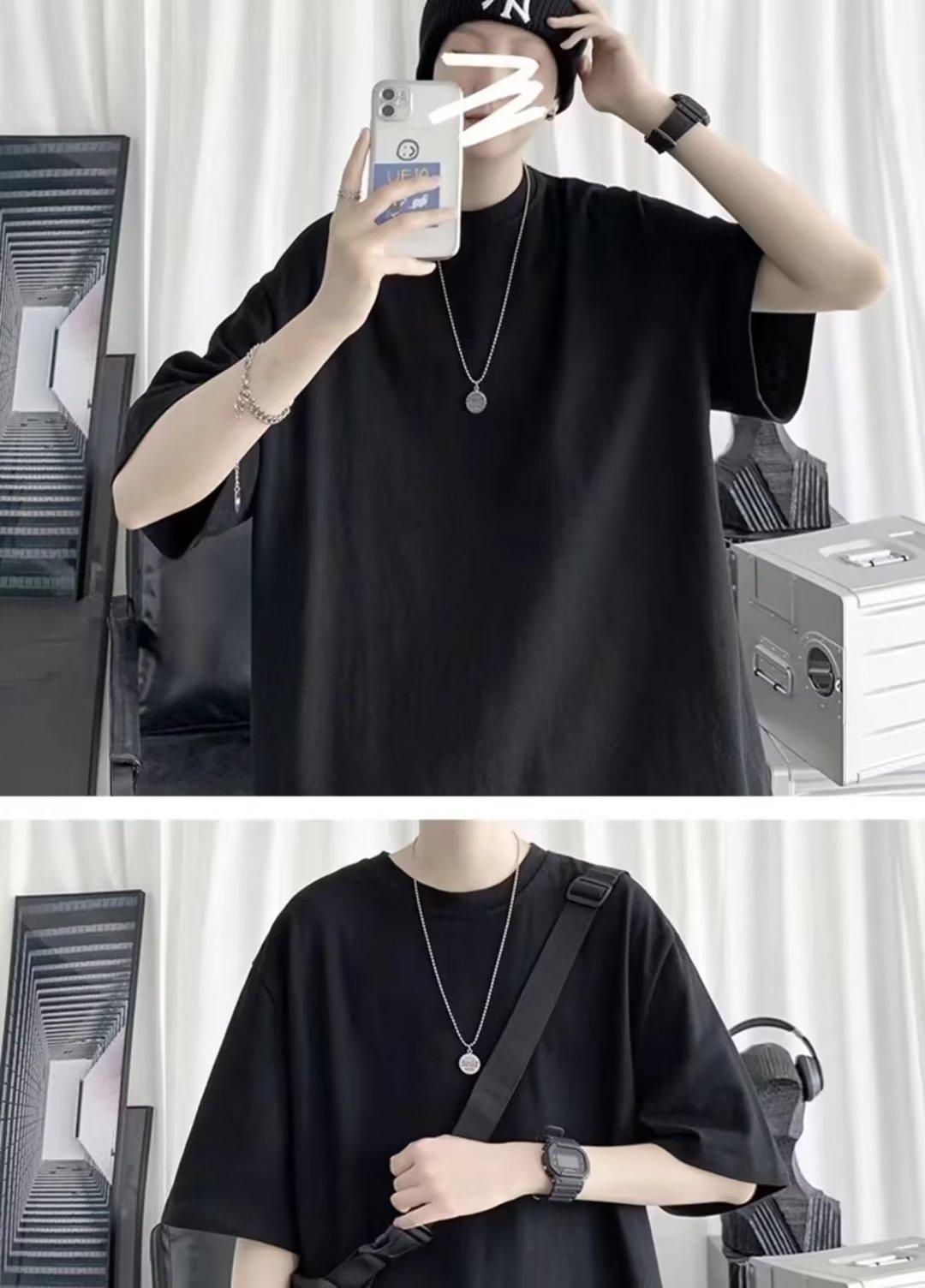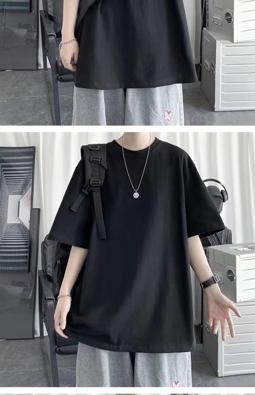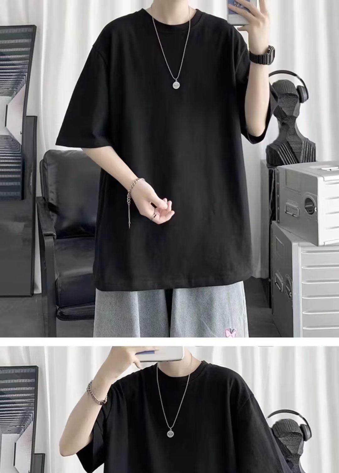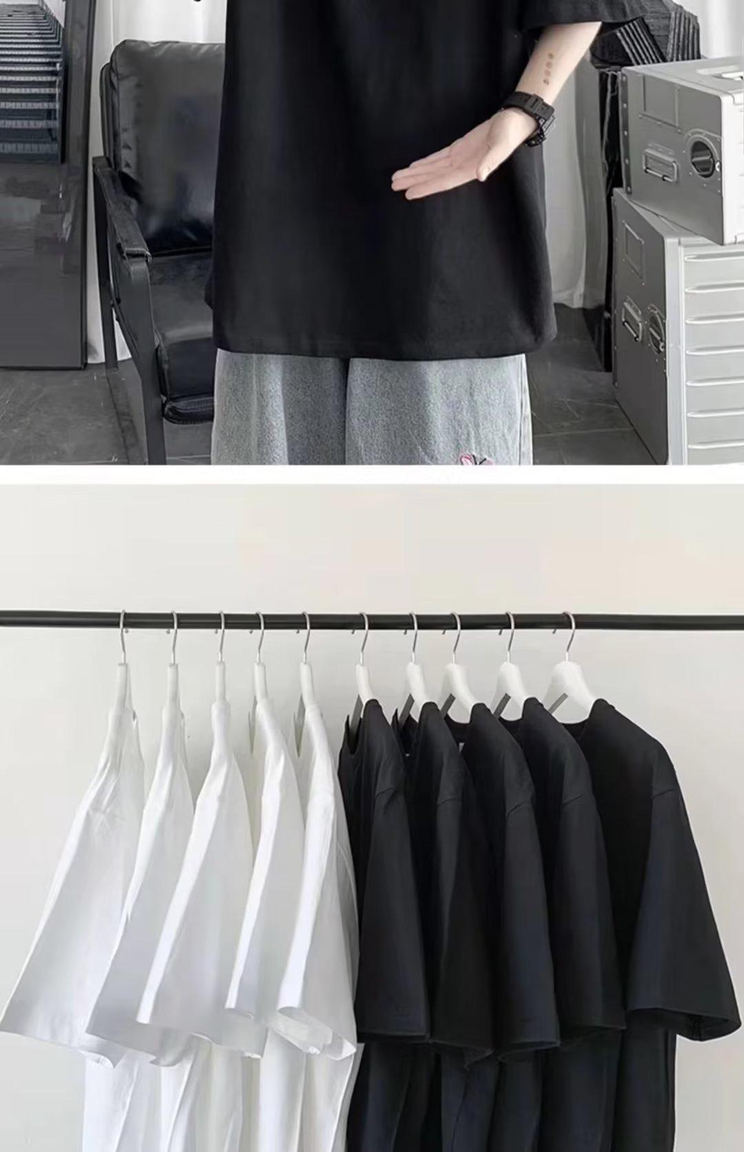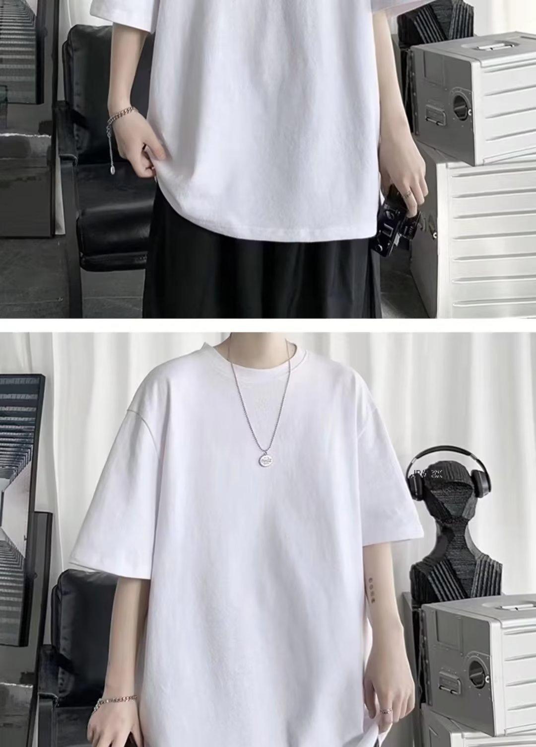 Camiseta de manga corta de algodón grueso de 230 g, de verano, de color liso, para hombre y mujer, con cuello redondo, holgada, blanca, tendencia
