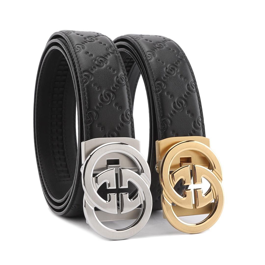 Cinturón para hombre de acero inoxidable con hebilla automática, cuero de grano superior de doble cara, casual versátil, piel de vaca, estilo de lujo al por mayor