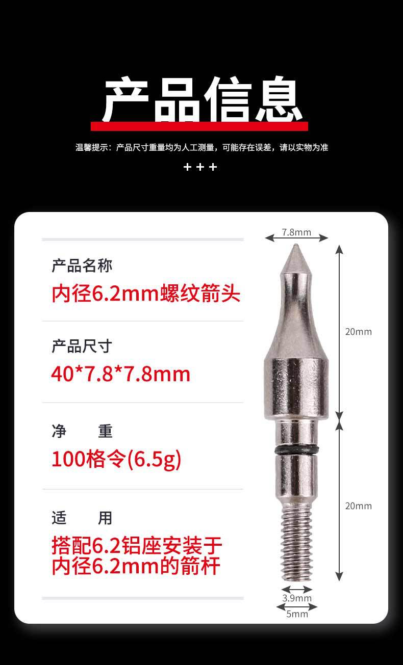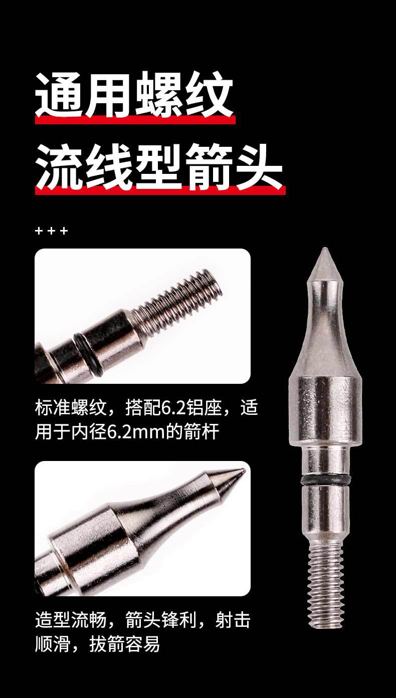 Punto Venta al por Mayor Diámetro Interior 6.2mm Flecha Flecha Roscada Material Acero al Carbono con Asiento de Aluminio Accesorios de Arco y Flecha