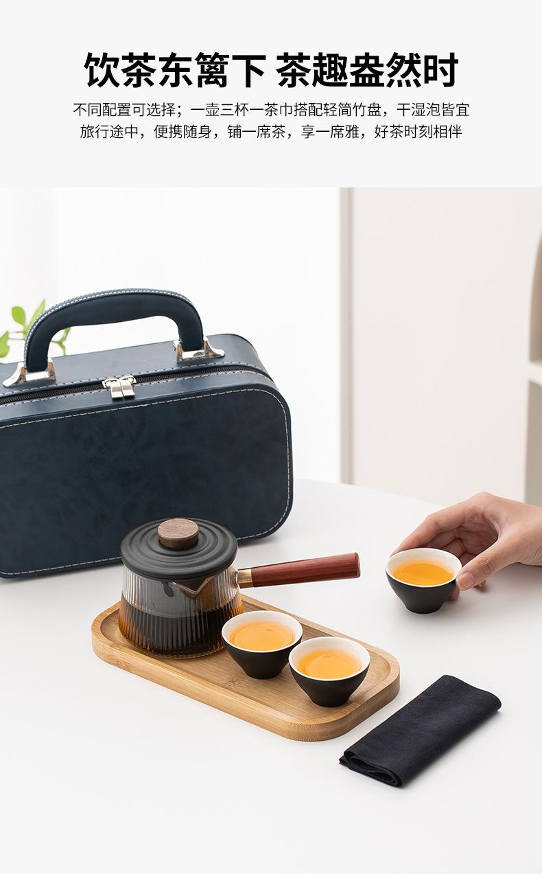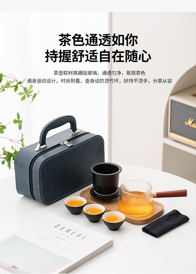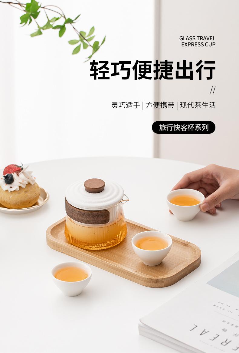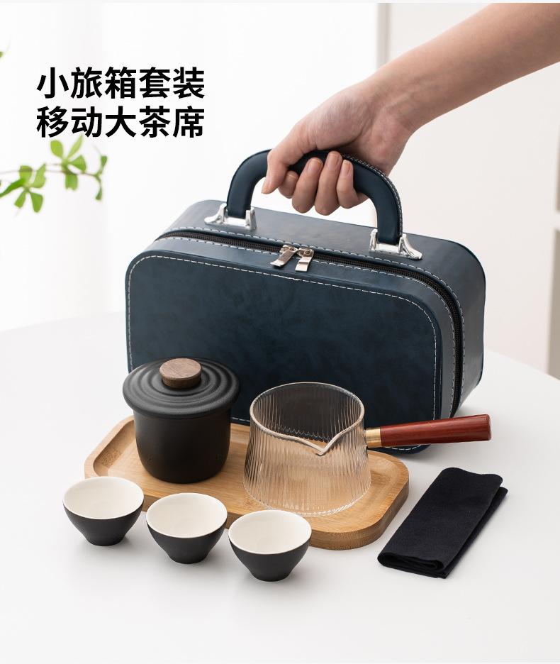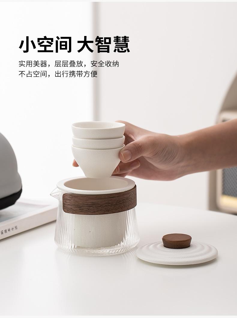 Juego de té portátil para acampar al aire libre, taza exprés, juego de té de viaje portátil, una tetera, tres tazas, juego pequeño, tetera de vidrio, regalo