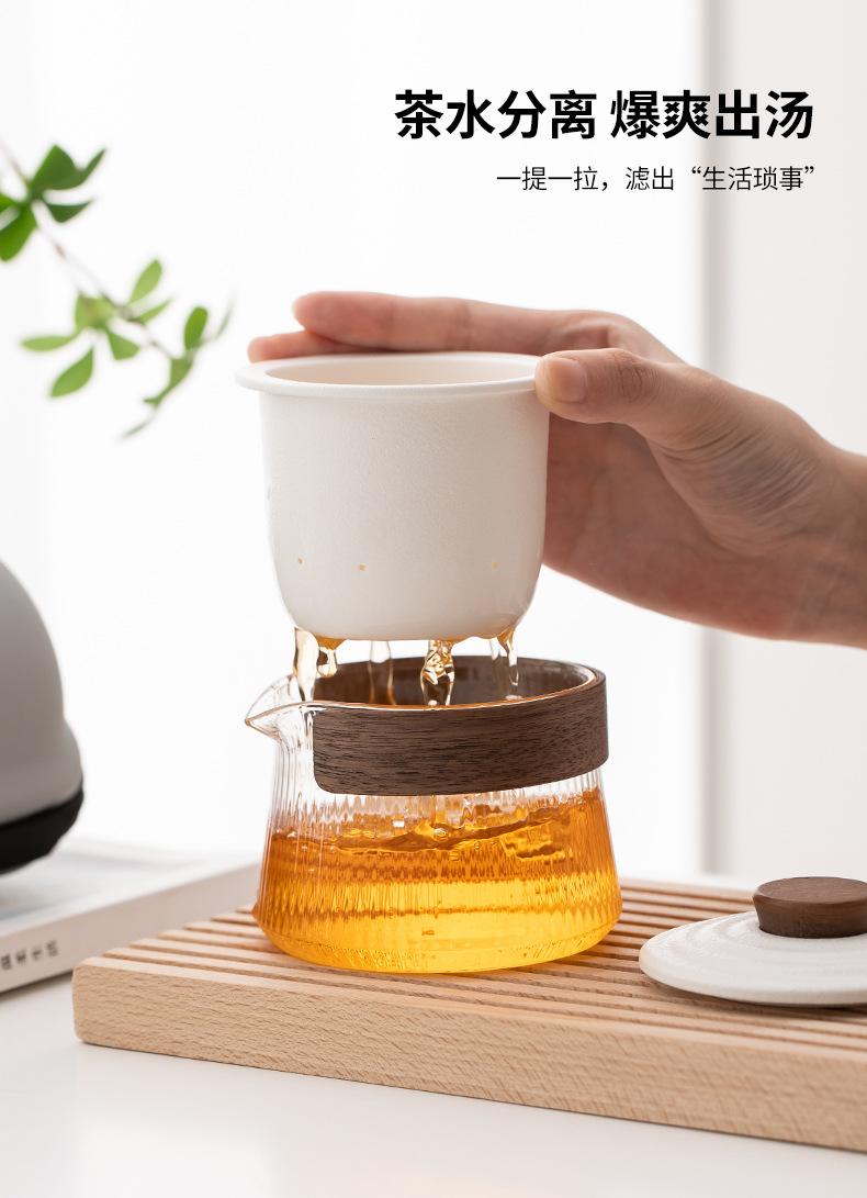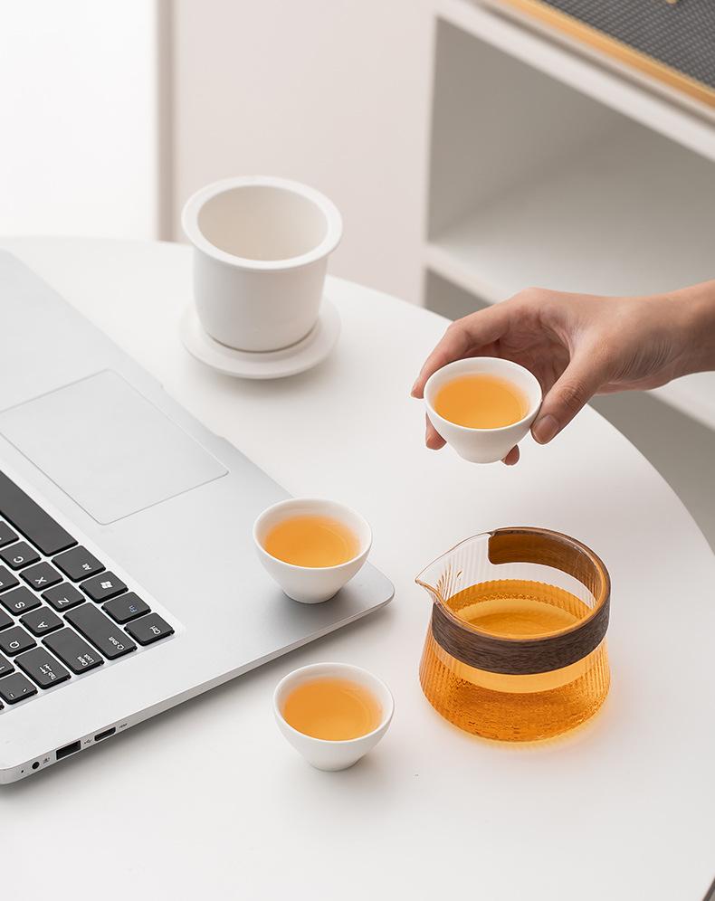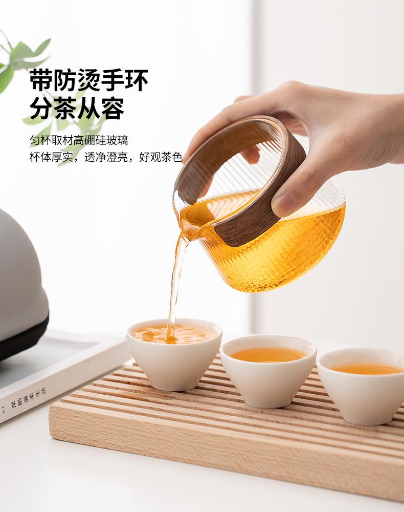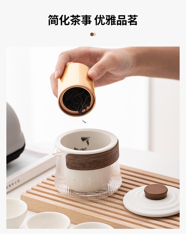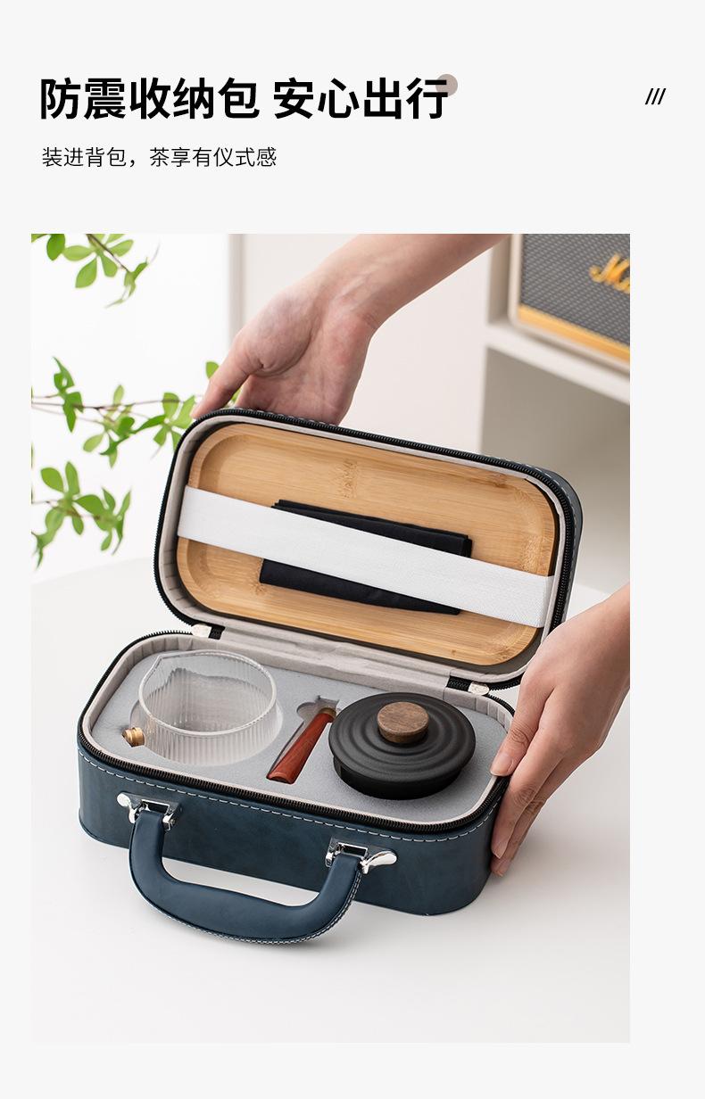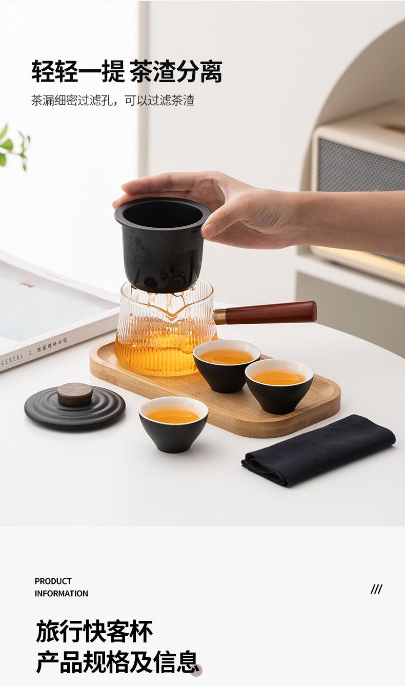 Juego de té portátil para acampar al aire libre, taza exprés, juego de té de viaje portátil, una tetera, tres tazas, juego pequeño, tetera de vidrio, regalo