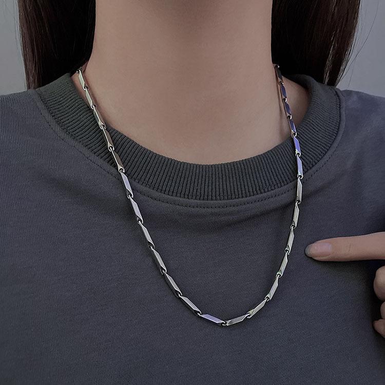 Nueva Cadena de Semilla de Melón Collar Simple Color Acero Titanio Moda sin Color para Hombres y Mujeres Estilo Cool Hip-hop Cadena de Clavícula Distintiva