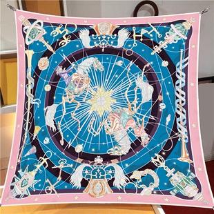 | Pañuelo de seda cuadrado, pañuelo de sarga de seda, regalo, diadema, decoración profesional, cinta, estilo princesa dulce, cielo estrellado, pañuelo pequeño para mujer |