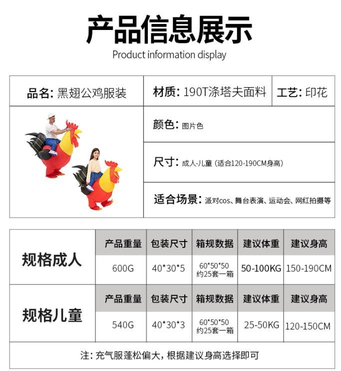 Fiesta de Halloween Divertido y Humorístico Gallo de Alas Negras Disfraz de Mascota Inflable Accesorios Traje de Fiesta para Actuación Infantil