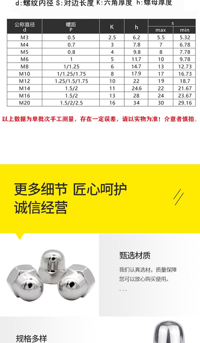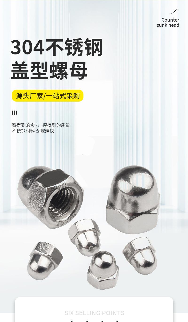 Tuerca de Tapa de Acero Inoxidable 304 Tapa de Tornillo Decorativa Cabeza de Bola Redonda Tuerca de Tapa 316 Venta al por Mayor M3M4