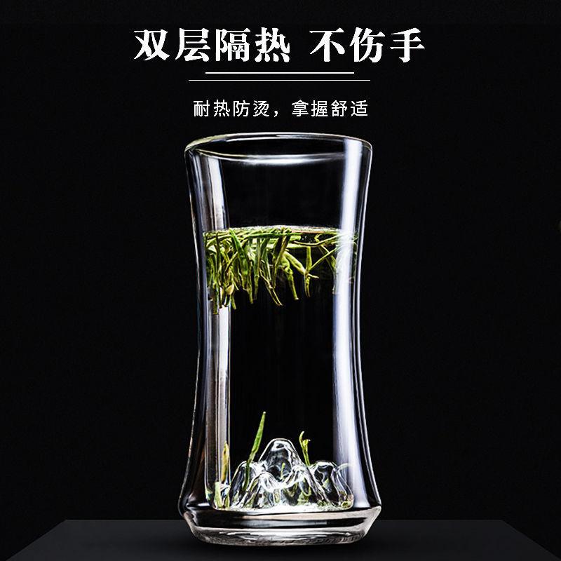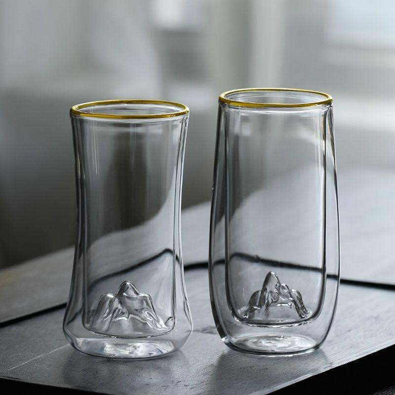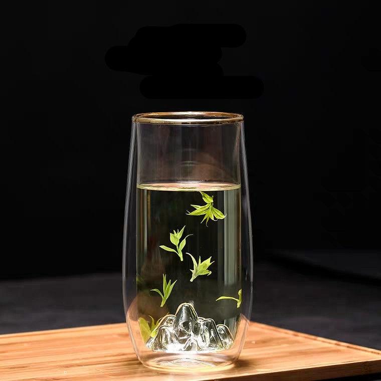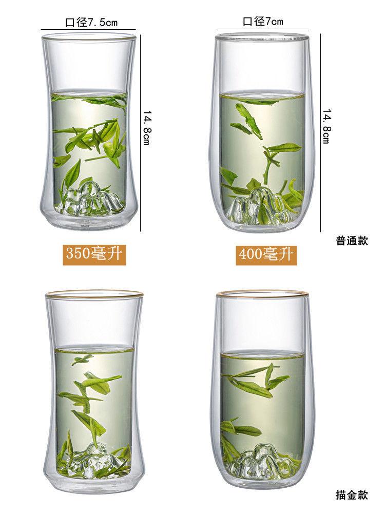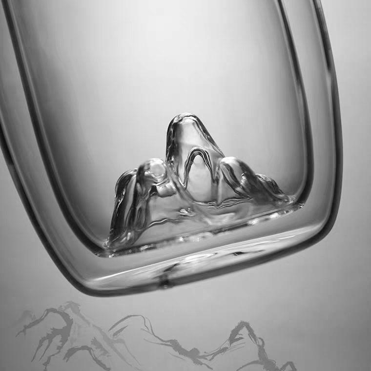 Vaso de Vidrio de Doble Capa Resistente al Calor Nuevo Vaso Grueso con Aislamiento Térmico Taza de Té Creativa Vista a la Montaña de Alta Gama para Oficina y Hogar