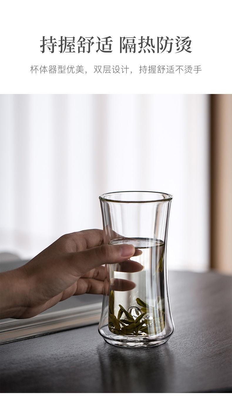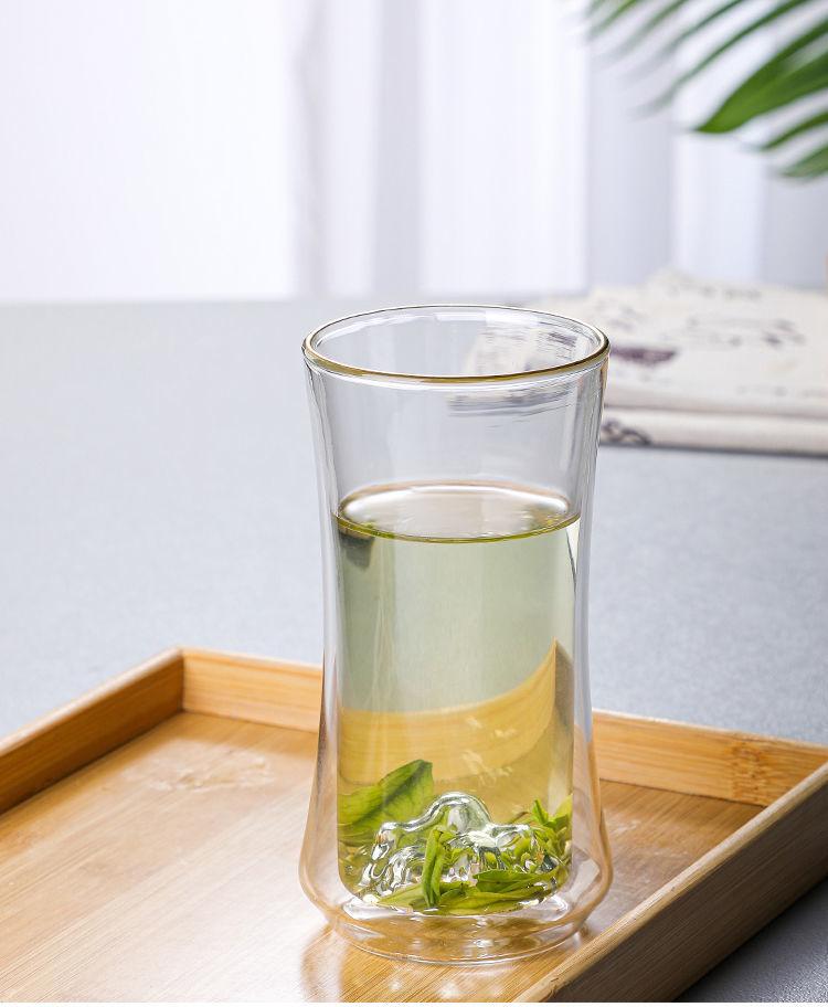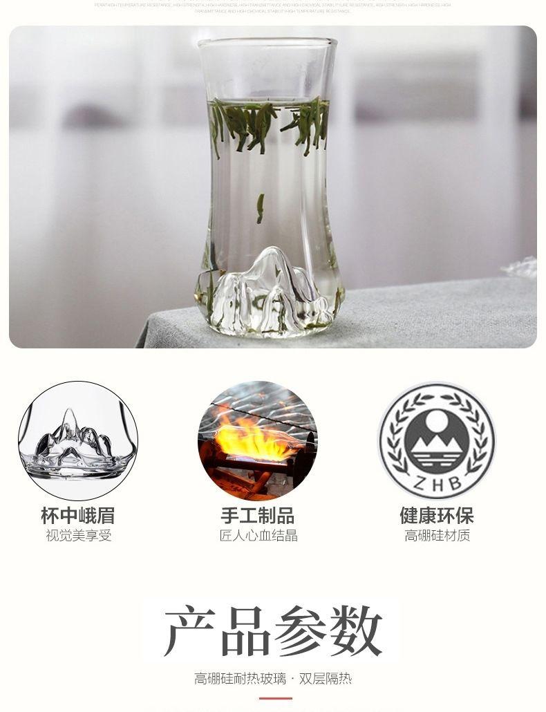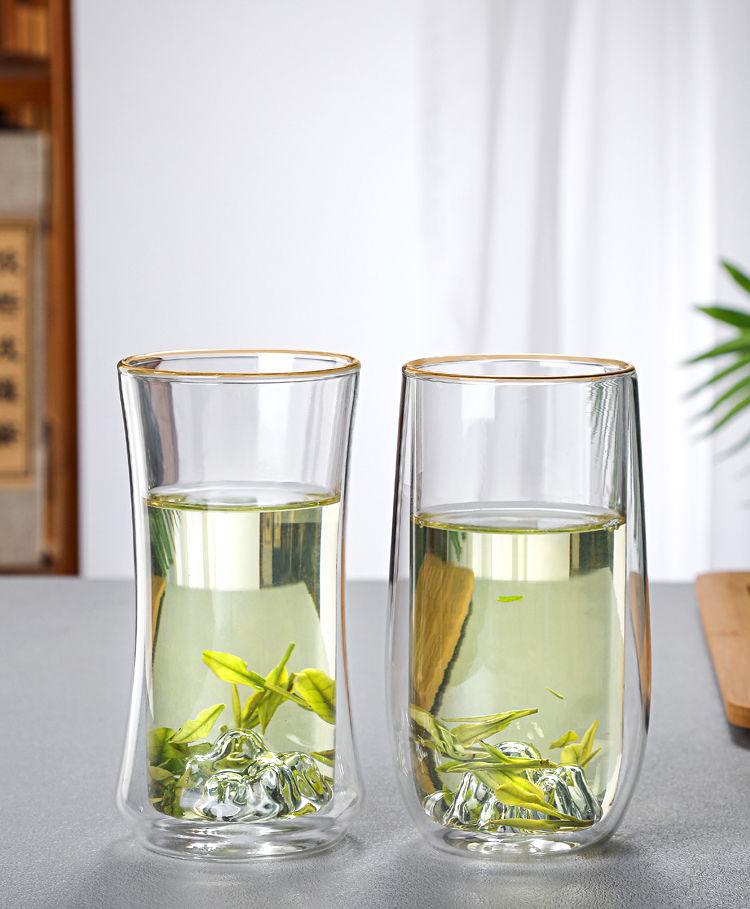 Vaso de Vidrio de Doble Capa Resistente al Calor Nuevo Vaso Grueso con Aislamiento Térmico Taza de Té Creativa Vista a la Montaña de Alta Gama para Oficina y Hogar