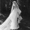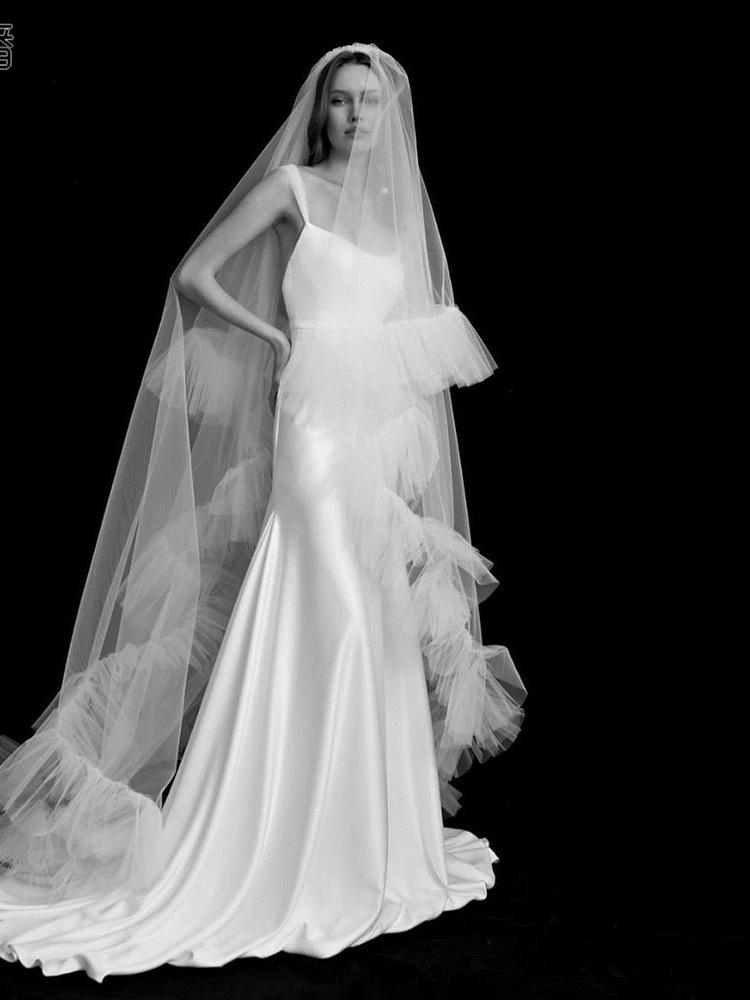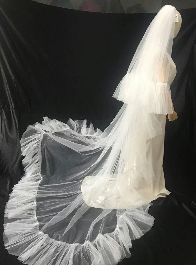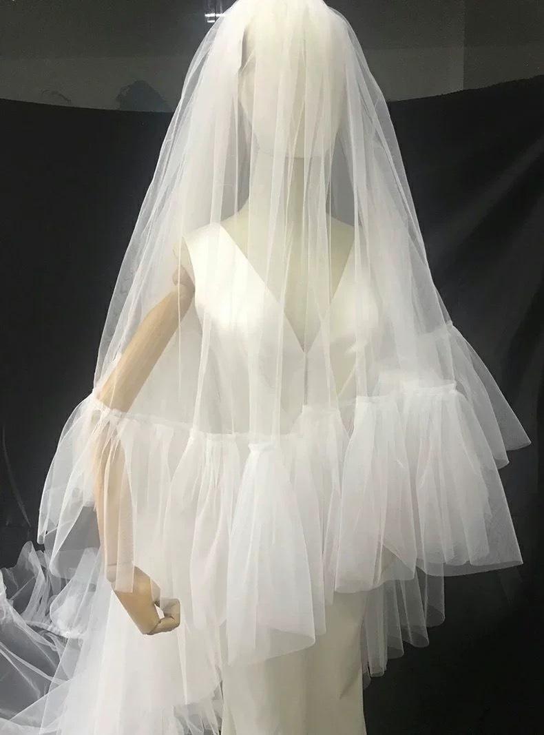 Velo de novia con volantes vestido de novia principal plisado largo de cola velo simple borde nube cubierta de doble capa accesorios para el cabello Mori