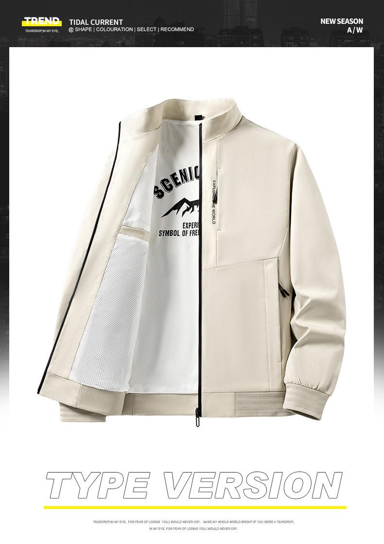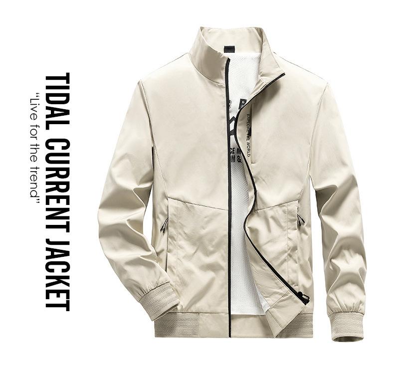 Chaqueta informal de primavera 2023 para hombre, con cuello entallado, cremallera bordada y combinable.