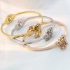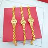 | |  | Pulsera de latón bañada en oro, moneda de euro, joyería de oro de imitación, regalo de boda, pulsera de tres anillos, pulsera de trébol de cuatro hojas de la suerte | |