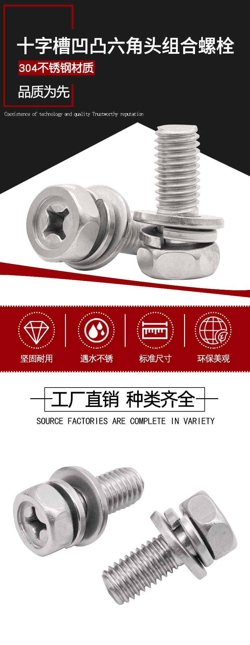 Compra Tornillo de combinación hexagonal exterior de acero inoxidable 304 con tres tornillos cóncavos cruzados GB9074.13 al por mayor en Joom.pro