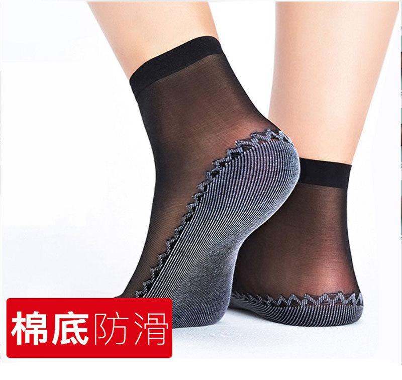 Medias de seda ultrafinas para mujer, calcetines cortos de verano para mujer, calcetines de algodón de seda cristalina, calcetines cortos antideslizantes, cintas carnosas, medias de seda de acero transparente.