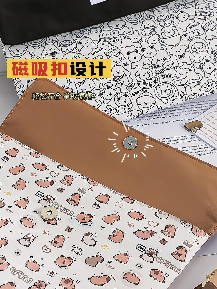 Nueva Bolsa de Archivos Kappi Bala Estudiante de Primaria Dibujos Animados Alto Valor de Color Gran Capacidad Cremallera Bolsa para Guardar Hojas de Examen