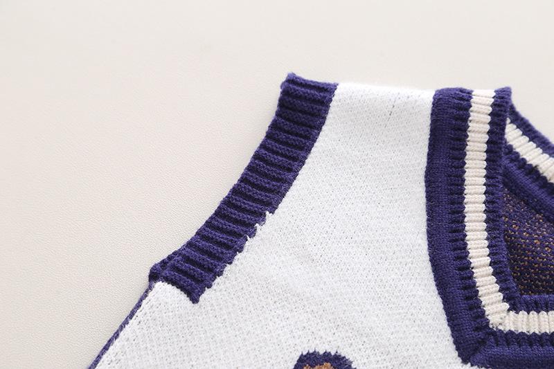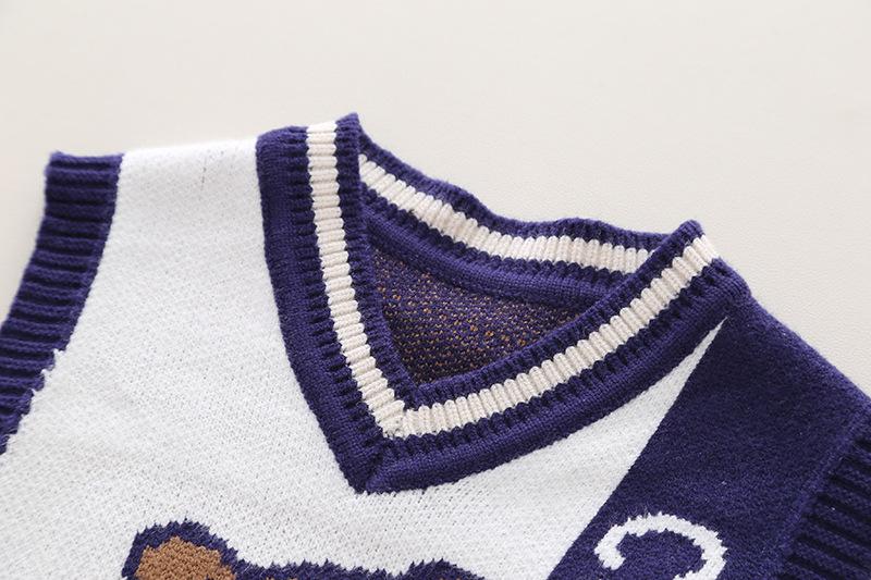 Long-sleeved bear sweater three-piece navy blue