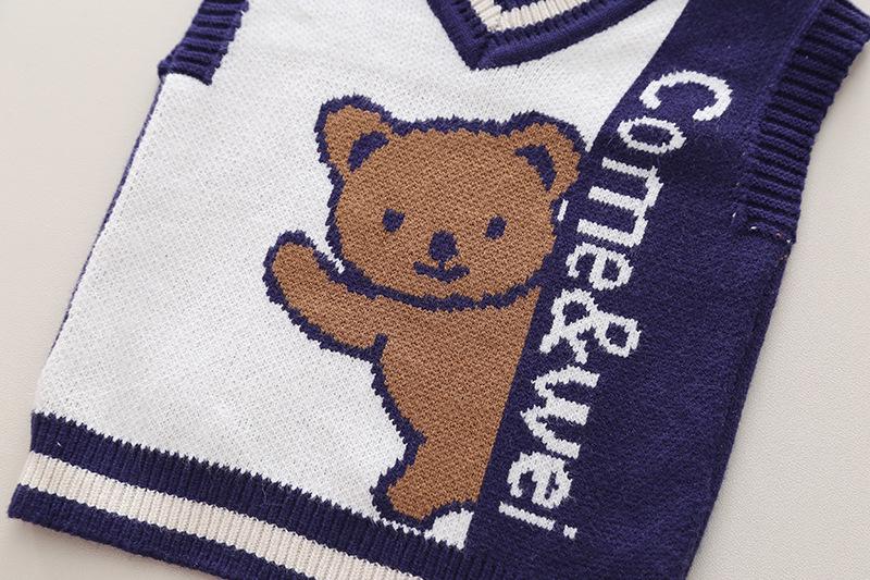 Long-sleeved bear sweater three-piece brown, Long-sleeved bear sweater three-piece navy blue
