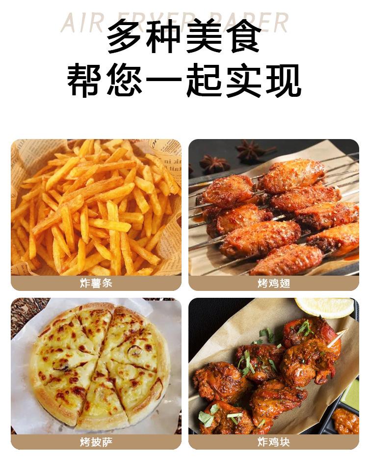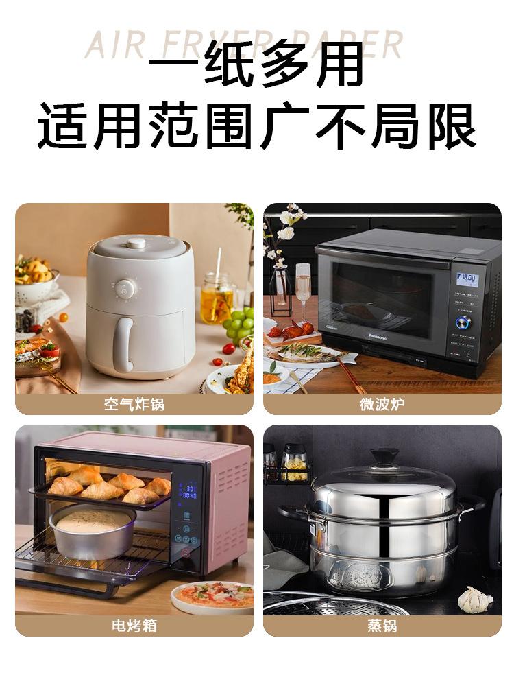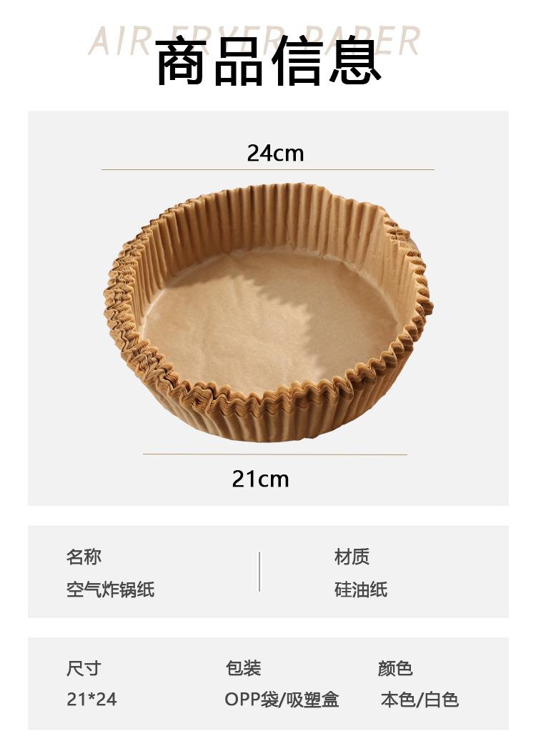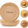 100 hojas de papel especial para freidora de aire, papel absorbente de aceite doméstico, papel cuadrado y redondo, papel de silicona, papel desechable de grado alimenticio.