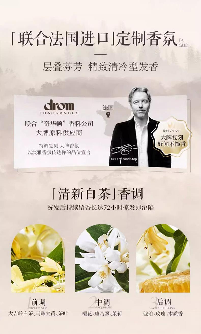 Champú con aminoácidos y fragancia de té blanco, champú anticaspa, fragancia duradera, set de lavado y protección, venta al por mayor genuina