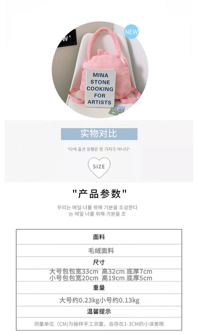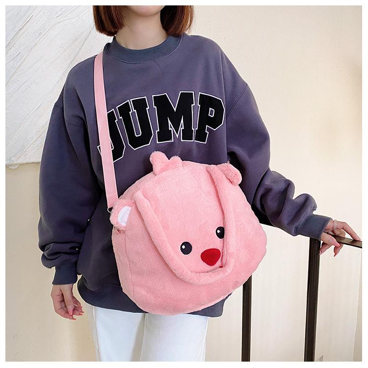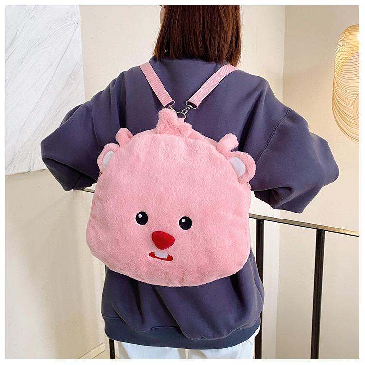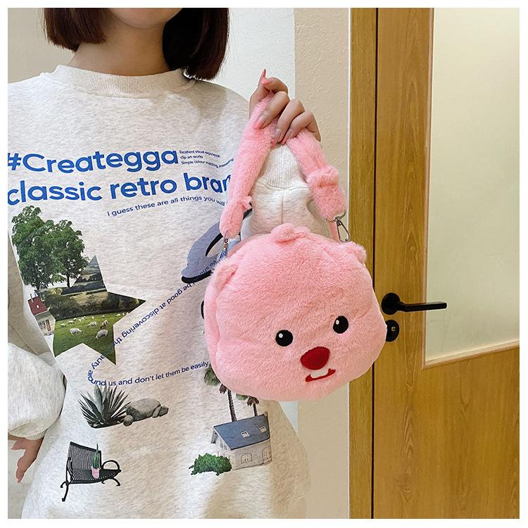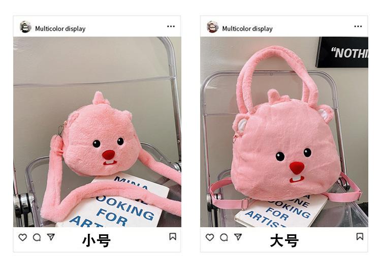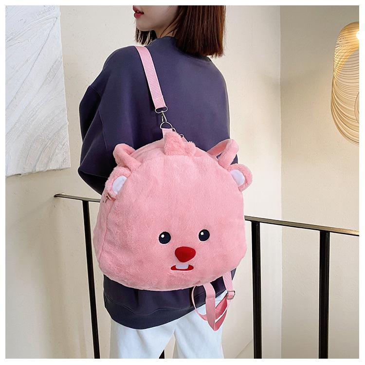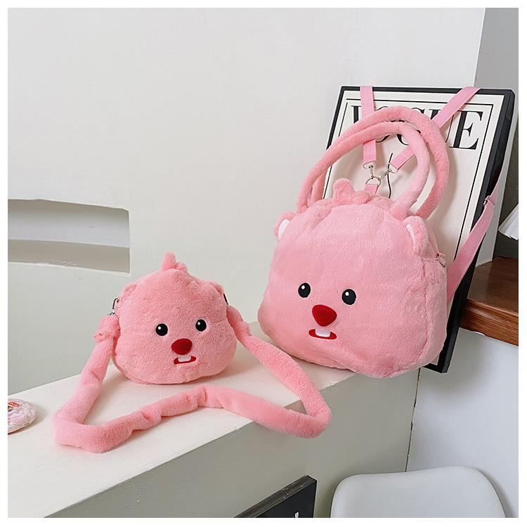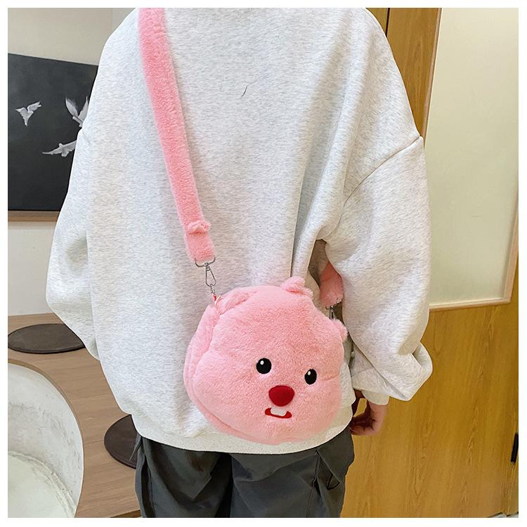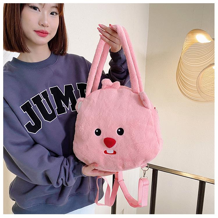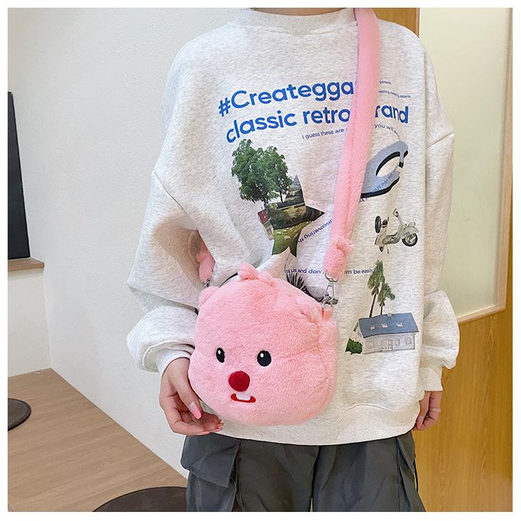 Nueva mochila de peluche de castorcito lindo, bolsa de mensajero de hombro linda de dibujos animados, bolso de mano para maquillaje de niña