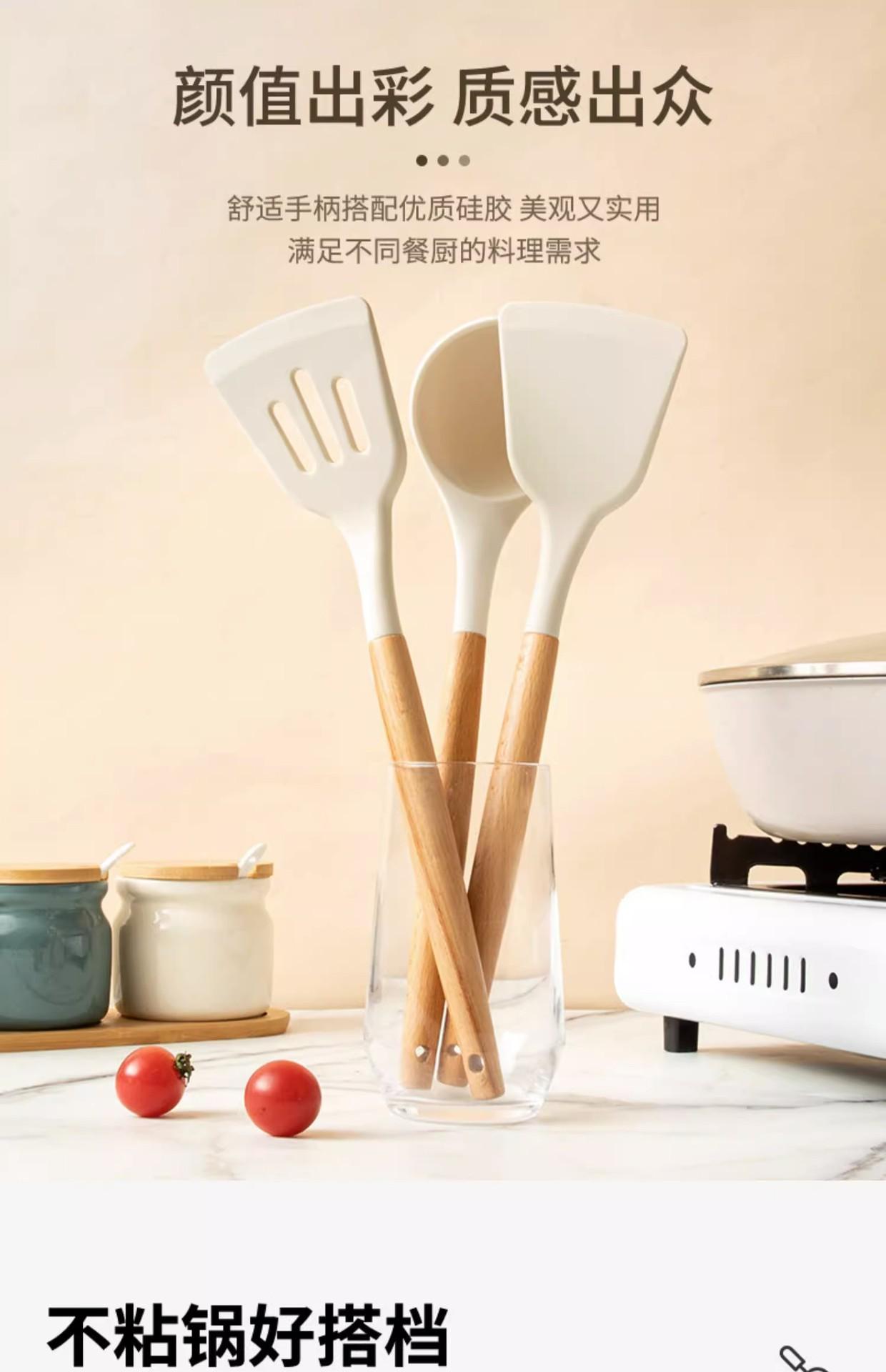 Utensilios de cocina de silicona de haya cocina sartén antiadherente herramientas de cocina pala para cocinar pala para freír mango de madera antiquemaduras espátula de silicona cuchara para sopa
