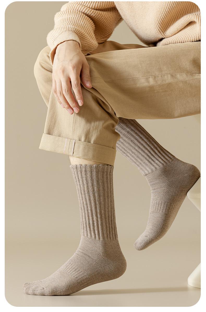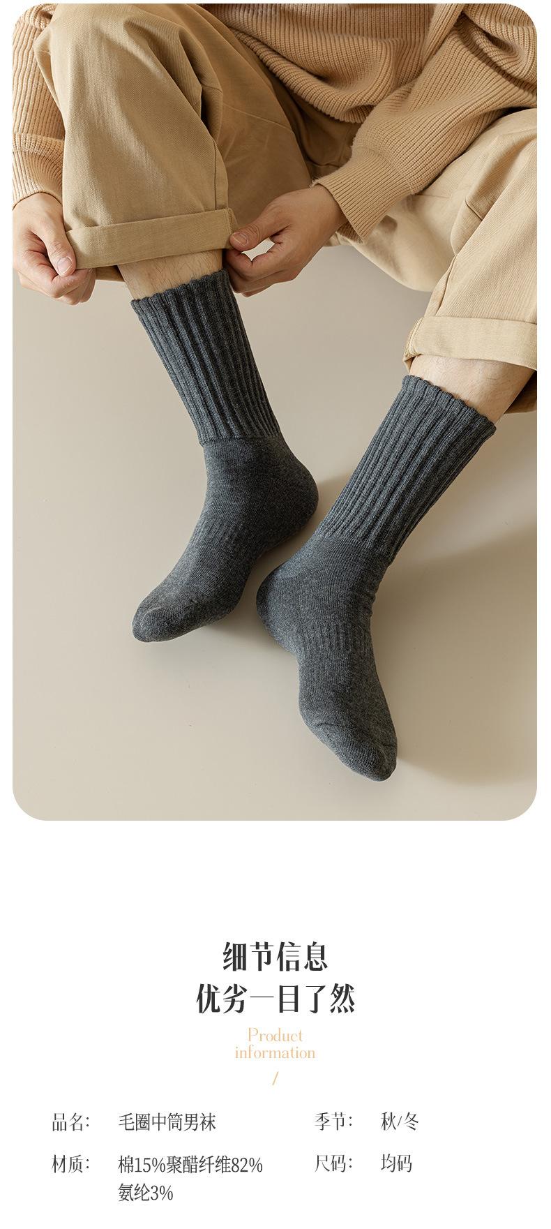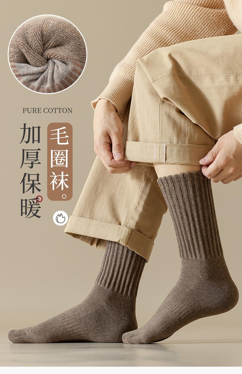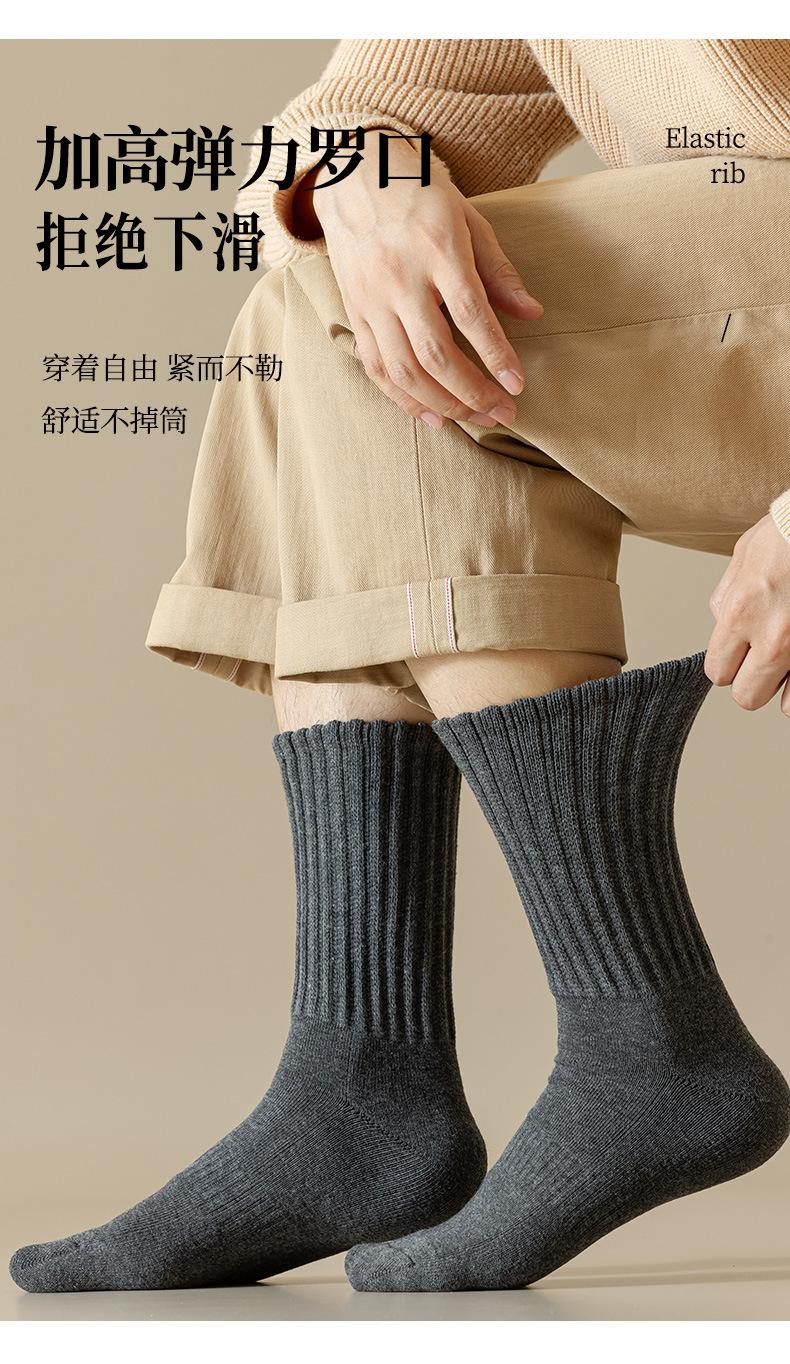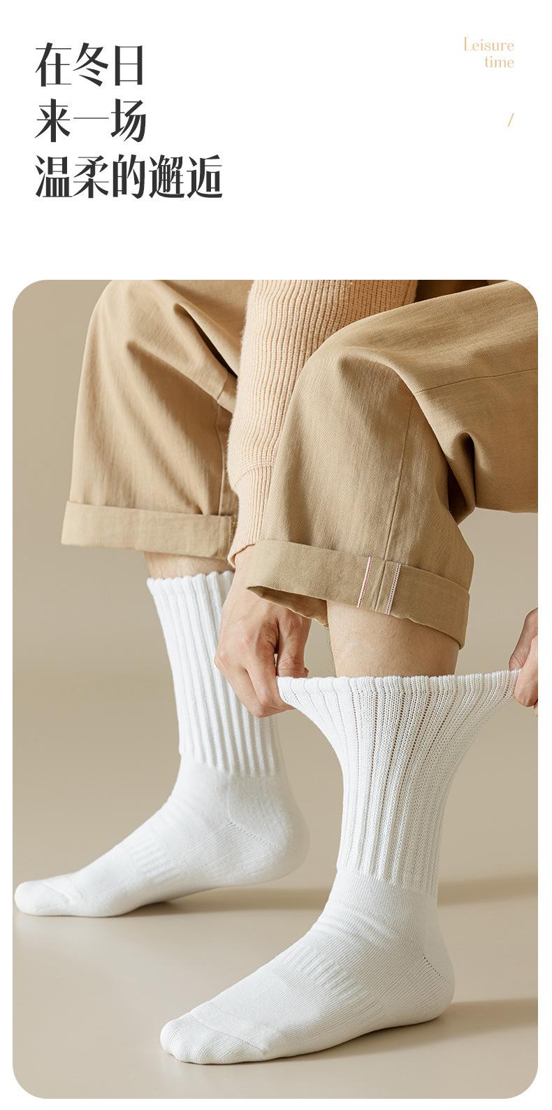 Calcetines Zhuji para hombre, otoño e invierno, calcetines gruesos de media pantorrilla con fondo de toalla, algodón puro, deportivos, casuales, blancos y negros, al por mayor