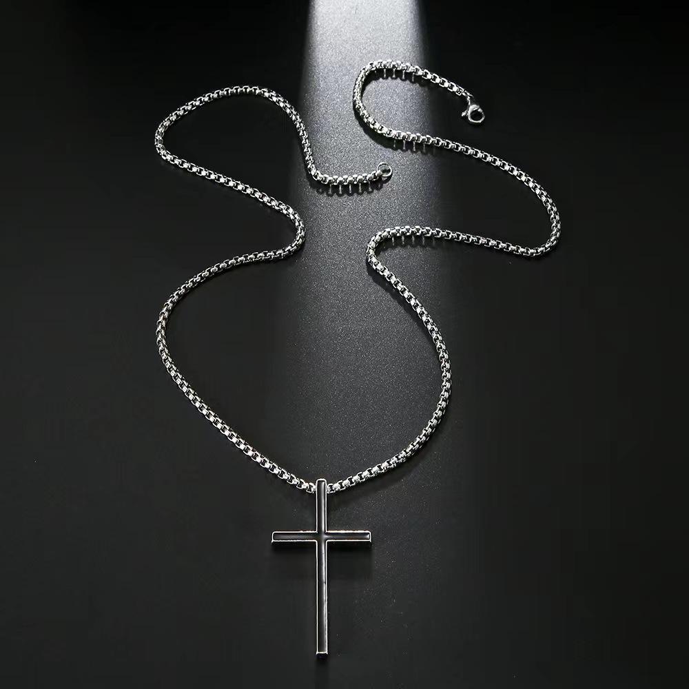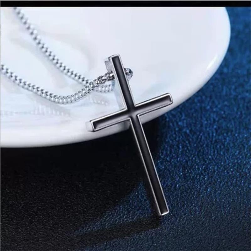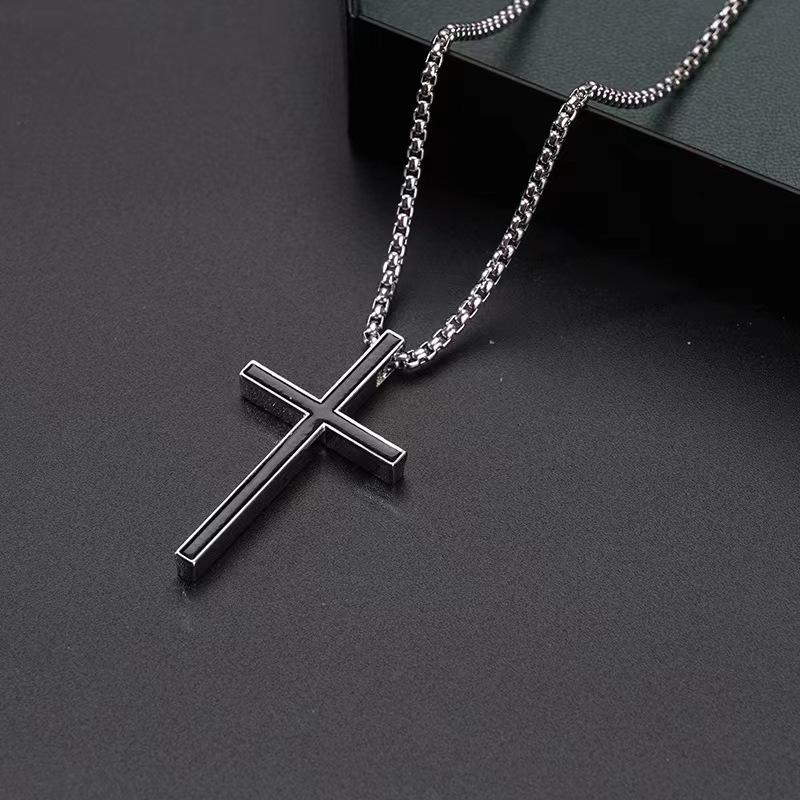 Collar de Cruz Retro Europeo y Americano Transfronterizo con Goteo de Aceite Negro para Hombres y Mujeres Personalizado Simple Colgante Largo Accesorios Colgante Cadena