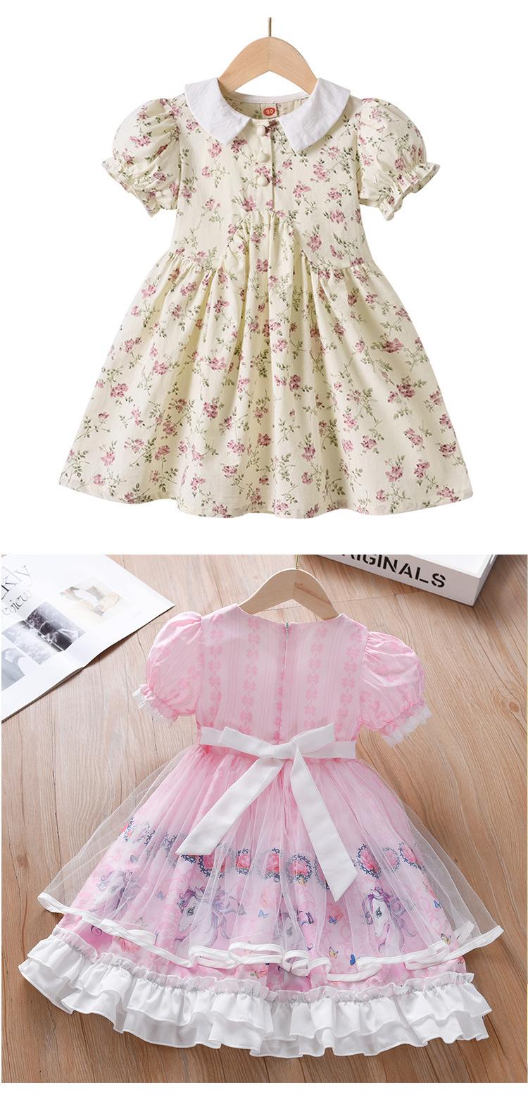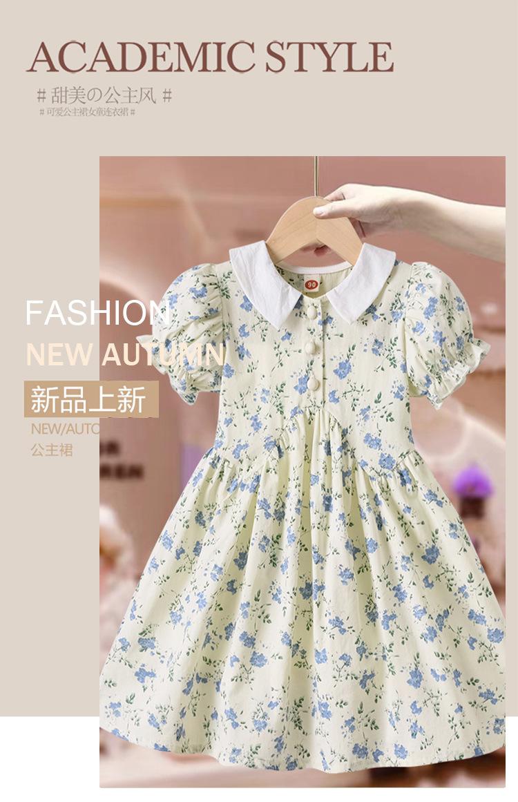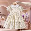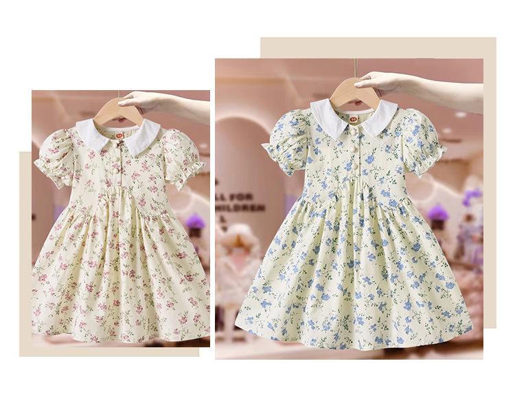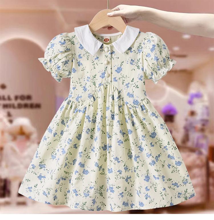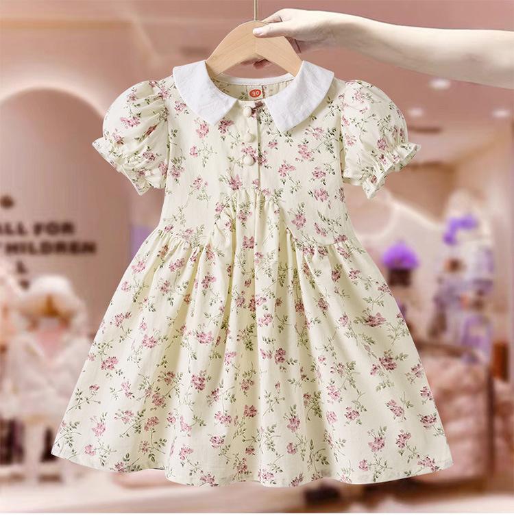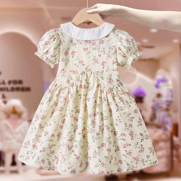 Vestido de Niña Vestido de Verano 2025 Nuevo Estilo Vestido de Verano de Manga Corta con Falda Floral Estilo Coreano Casual Falda Infantil