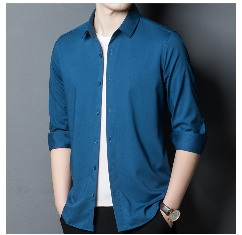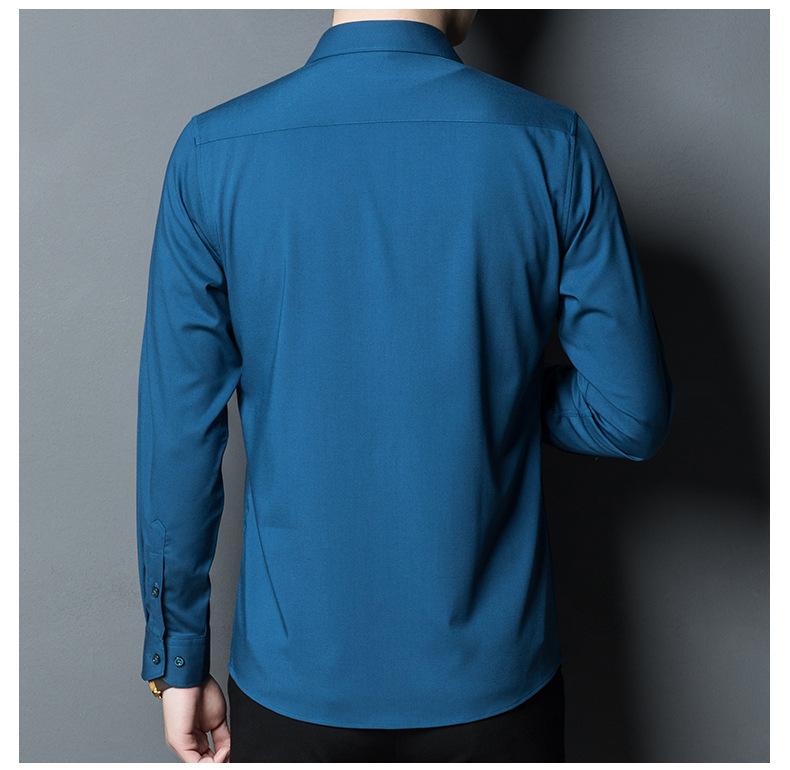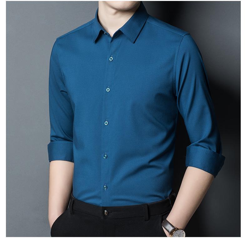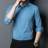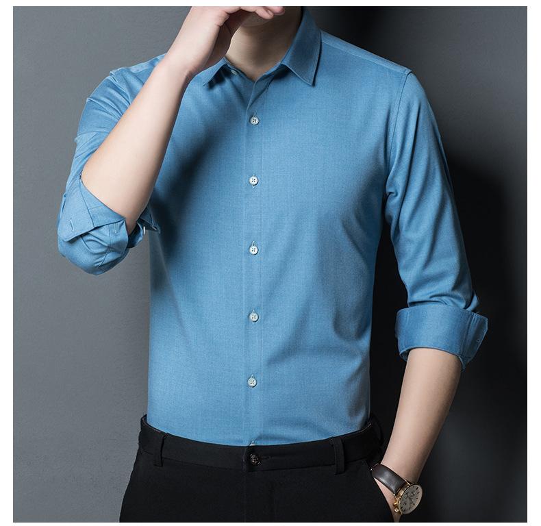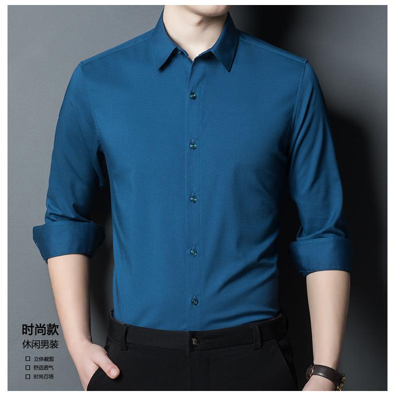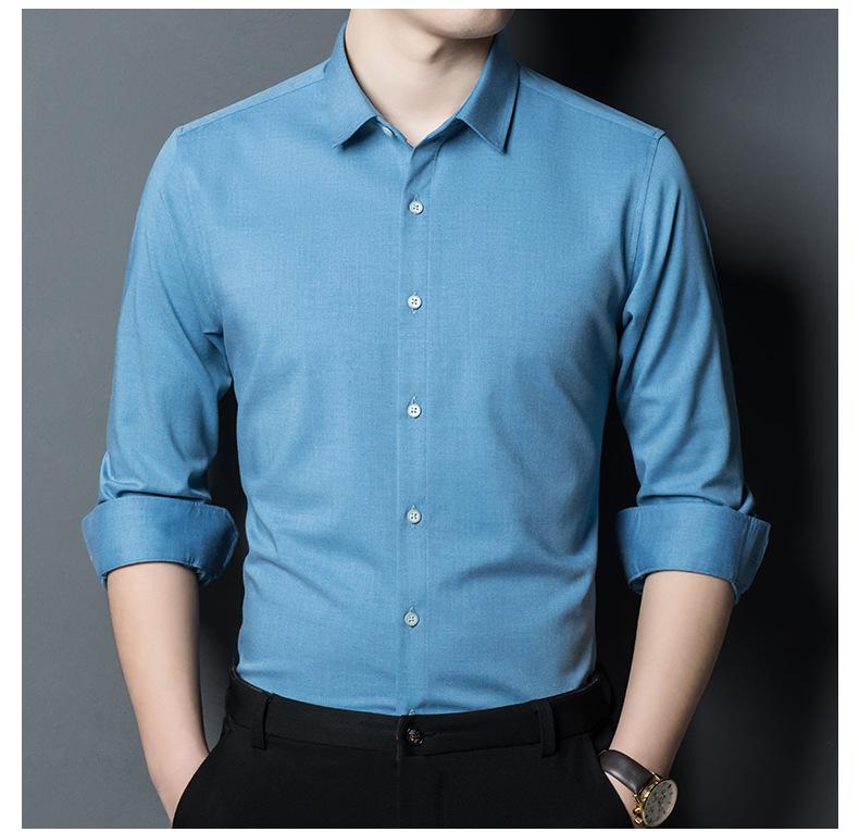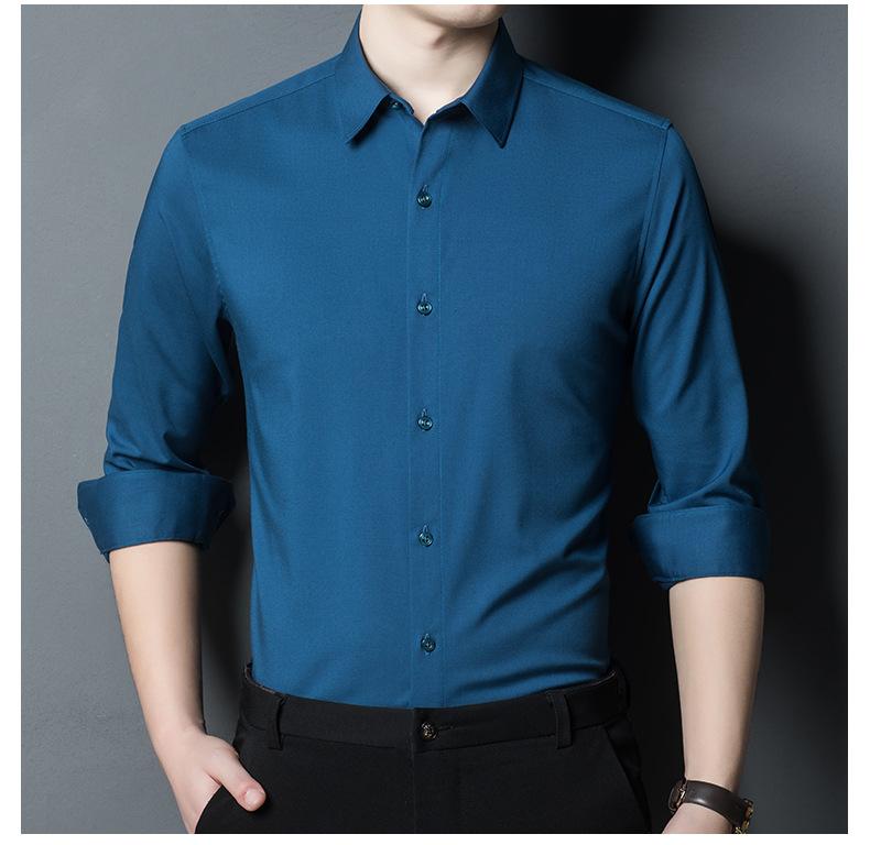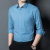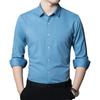 Camisa de manga larga para hombre, nueva, de color liso, para trabajo, informal, de negocios, verde claro, sin bolsillo, para hombre de mediana edad, sin planchado