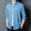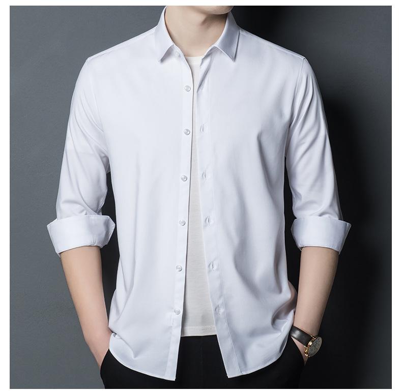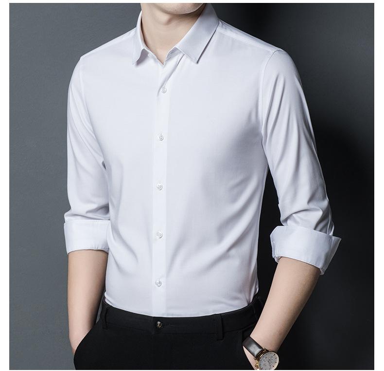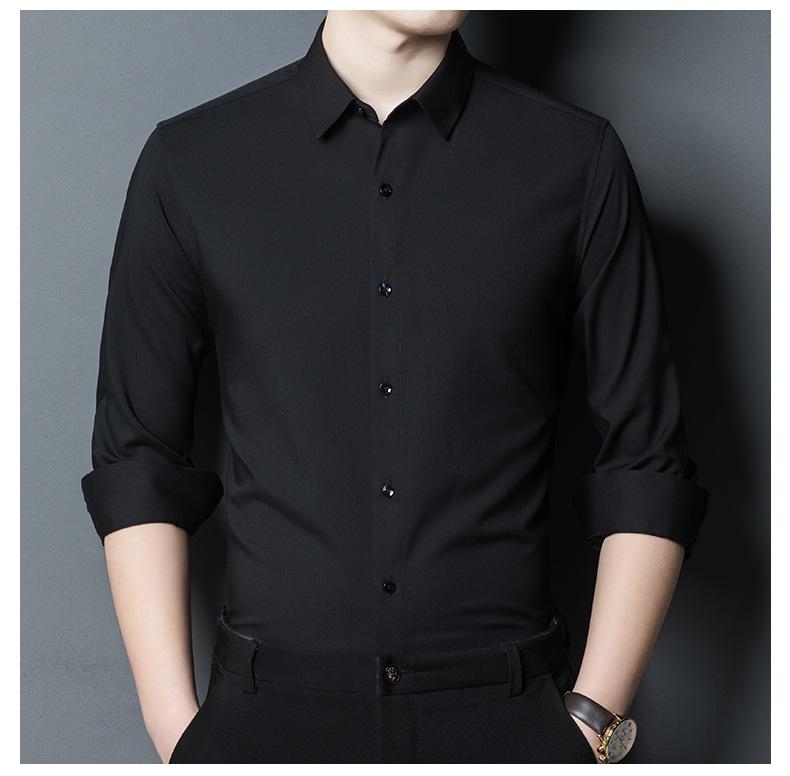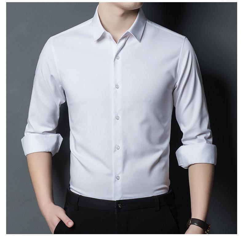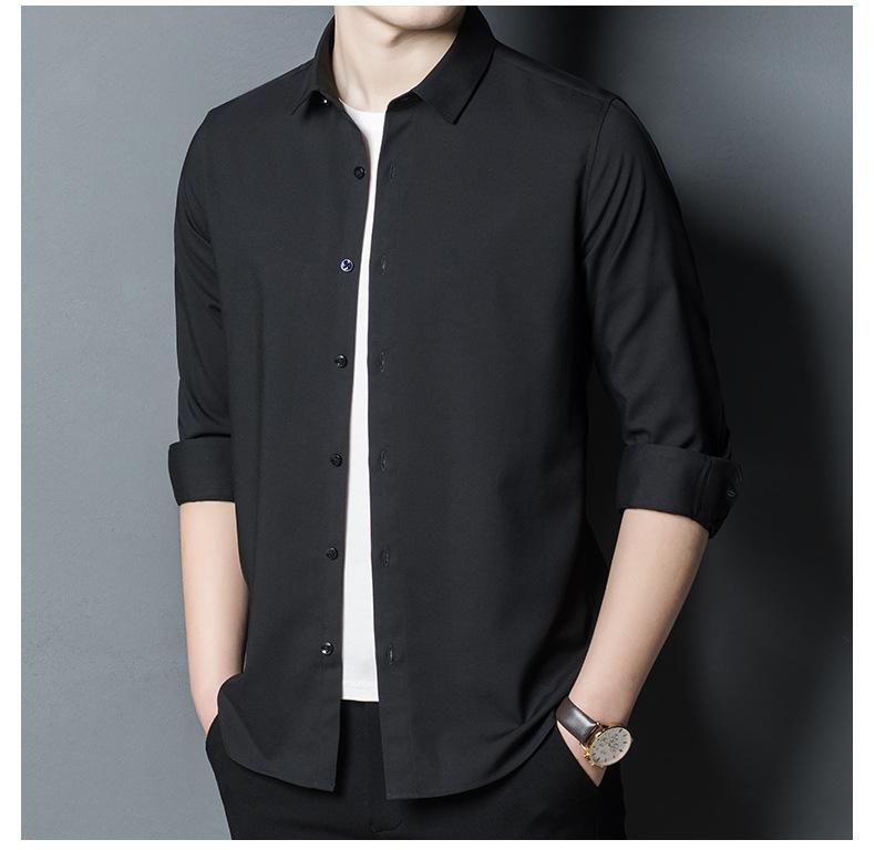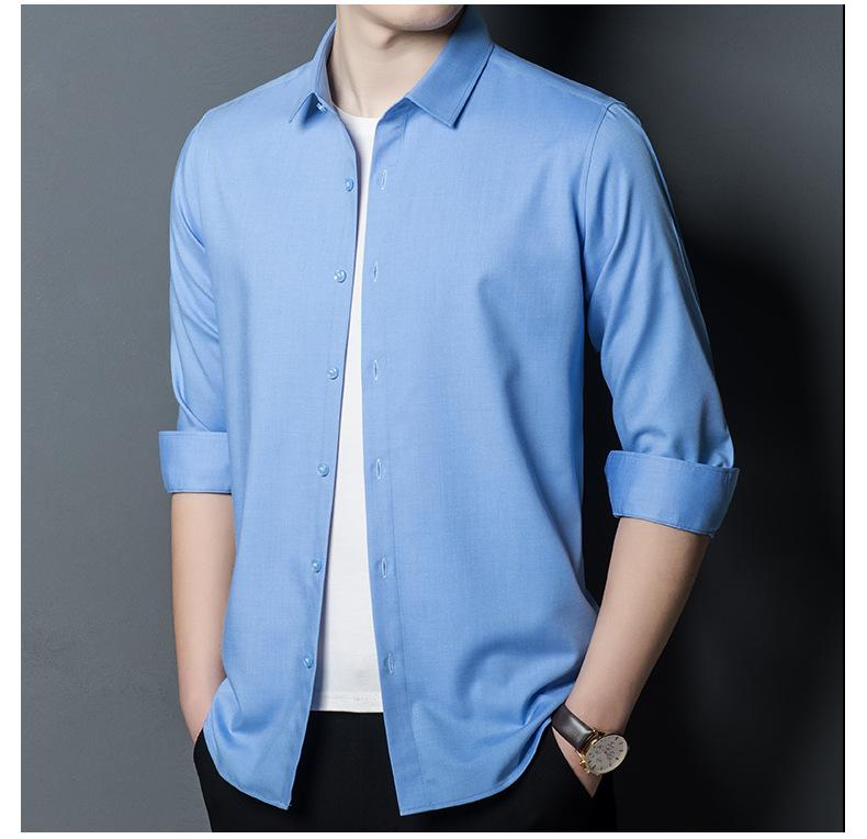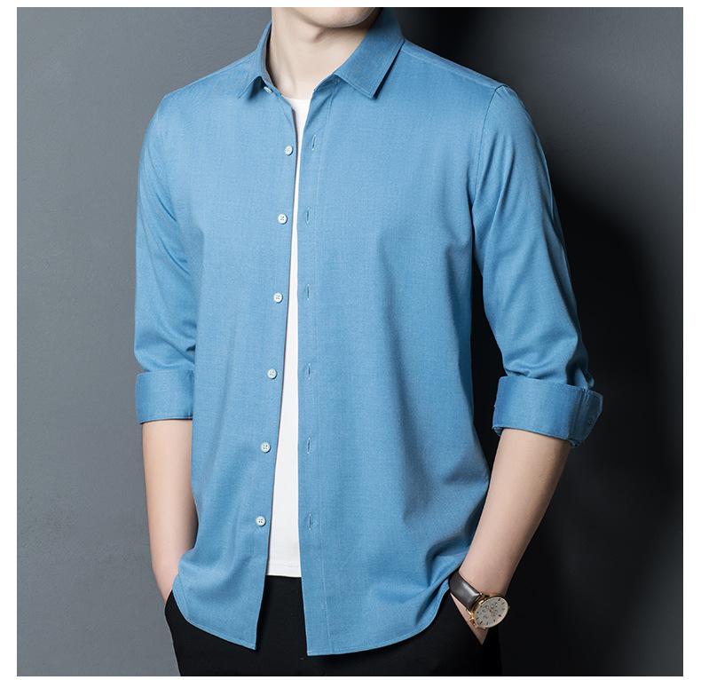 Camisa de manga larga para hombre, nueva, de color liso, para trabajo, informal, de negocios, verde claro, sin bolsillo, para hombre de mediana edad, sin planchado