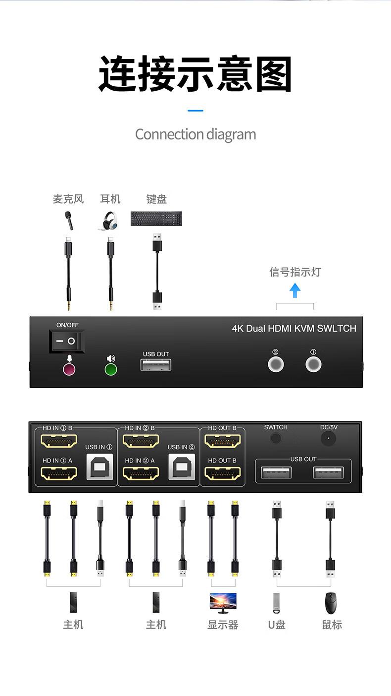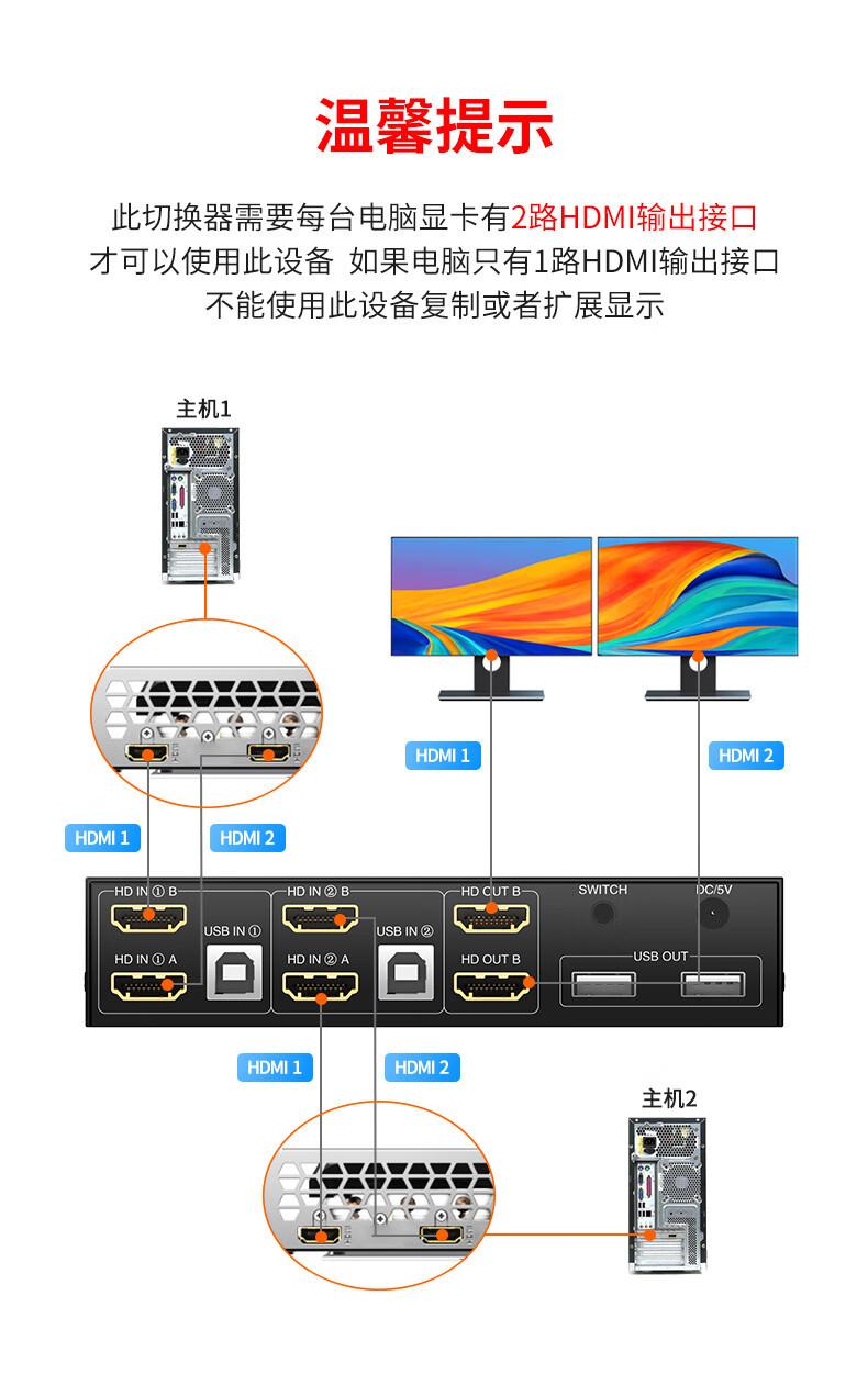 Conmutador KVM HDMI Biaz 2 entradas 2 salidas con botón externo expansión de tarjeta gráfica doble pantalla dos entradas 2 salidas