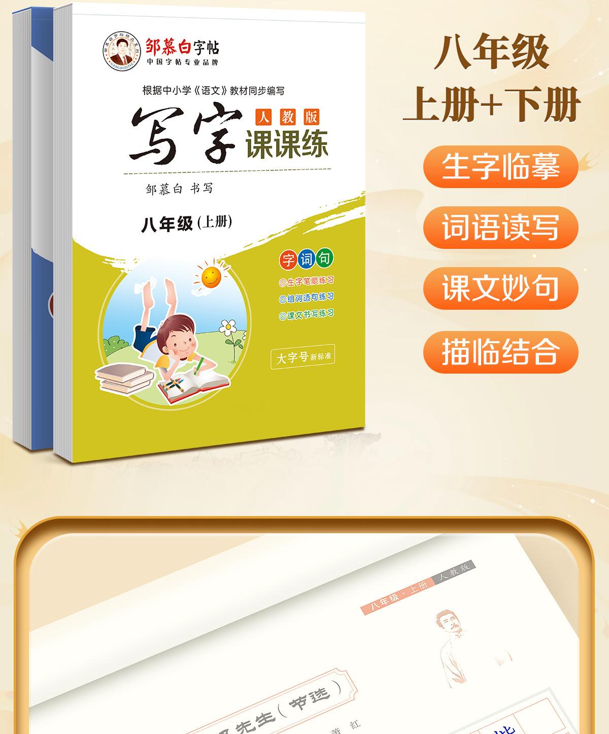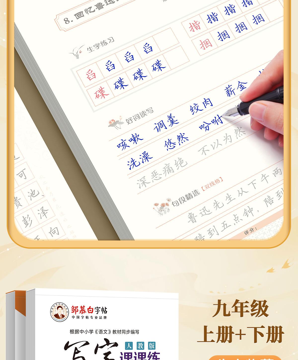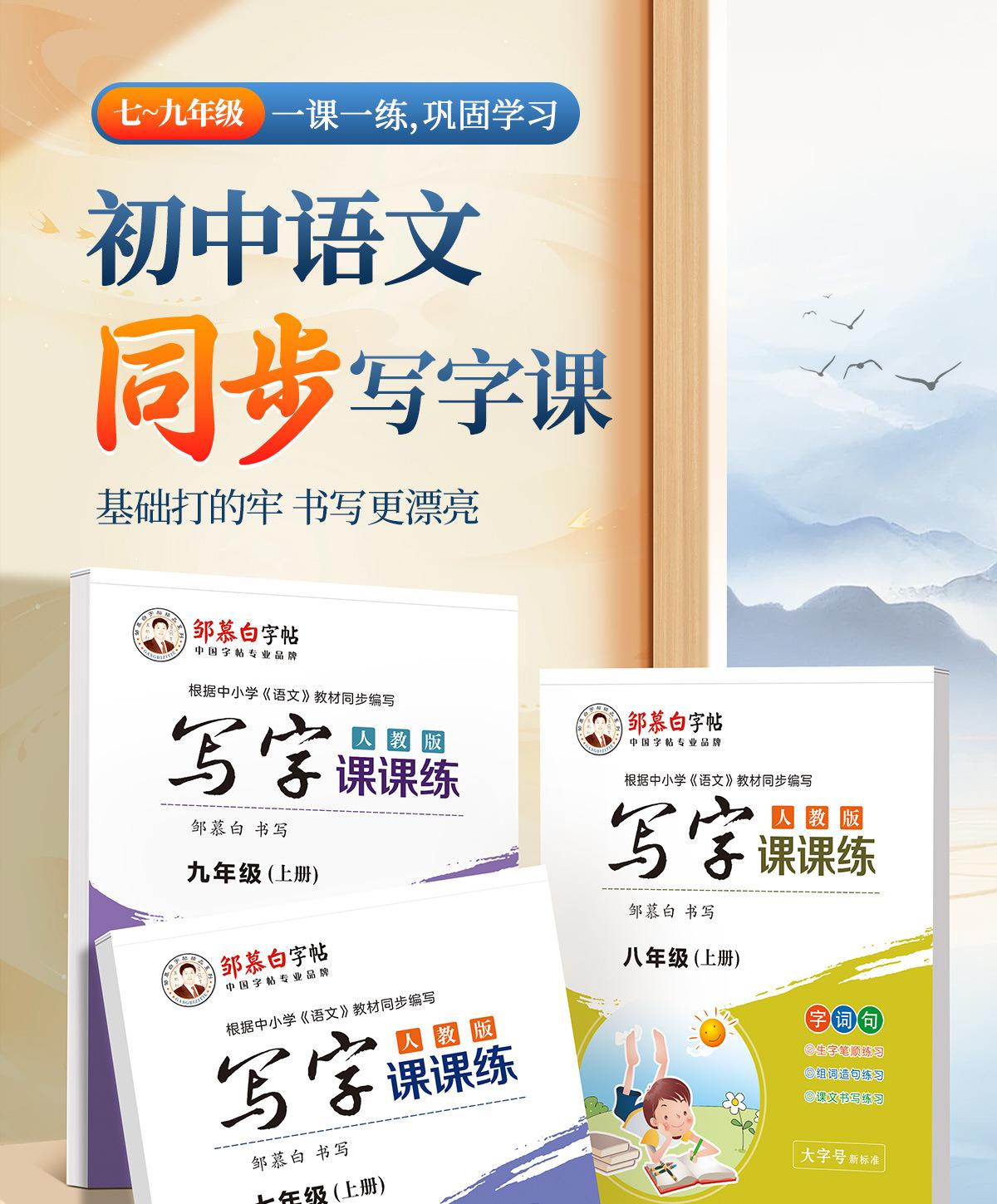 Zou Mubai Edición Educación Popular grados 7-9 Cuaderno de caligrafía chino clase de escritura Inglés Cuerpo Hengshui cuaderno de caligrafía síncrono
