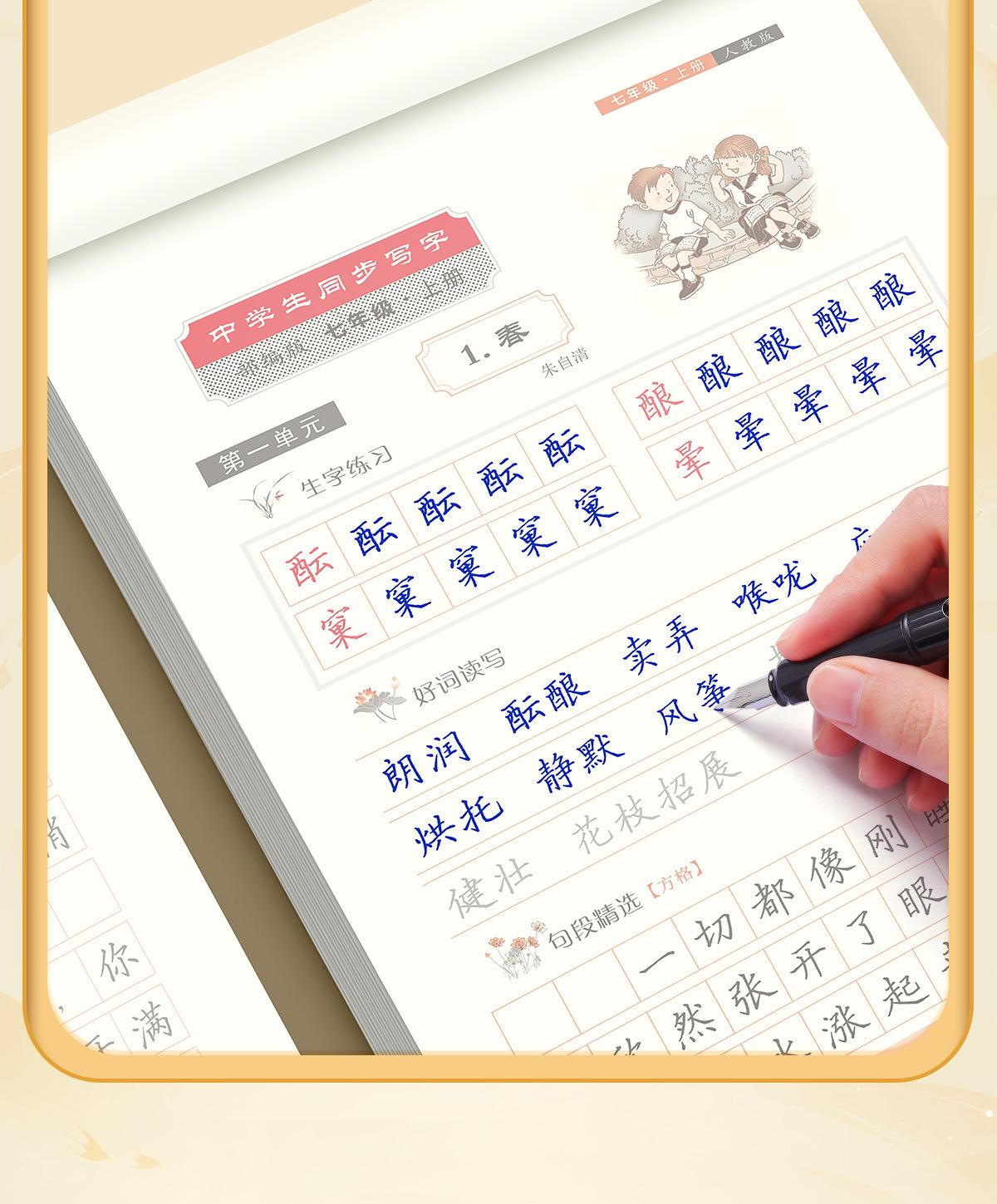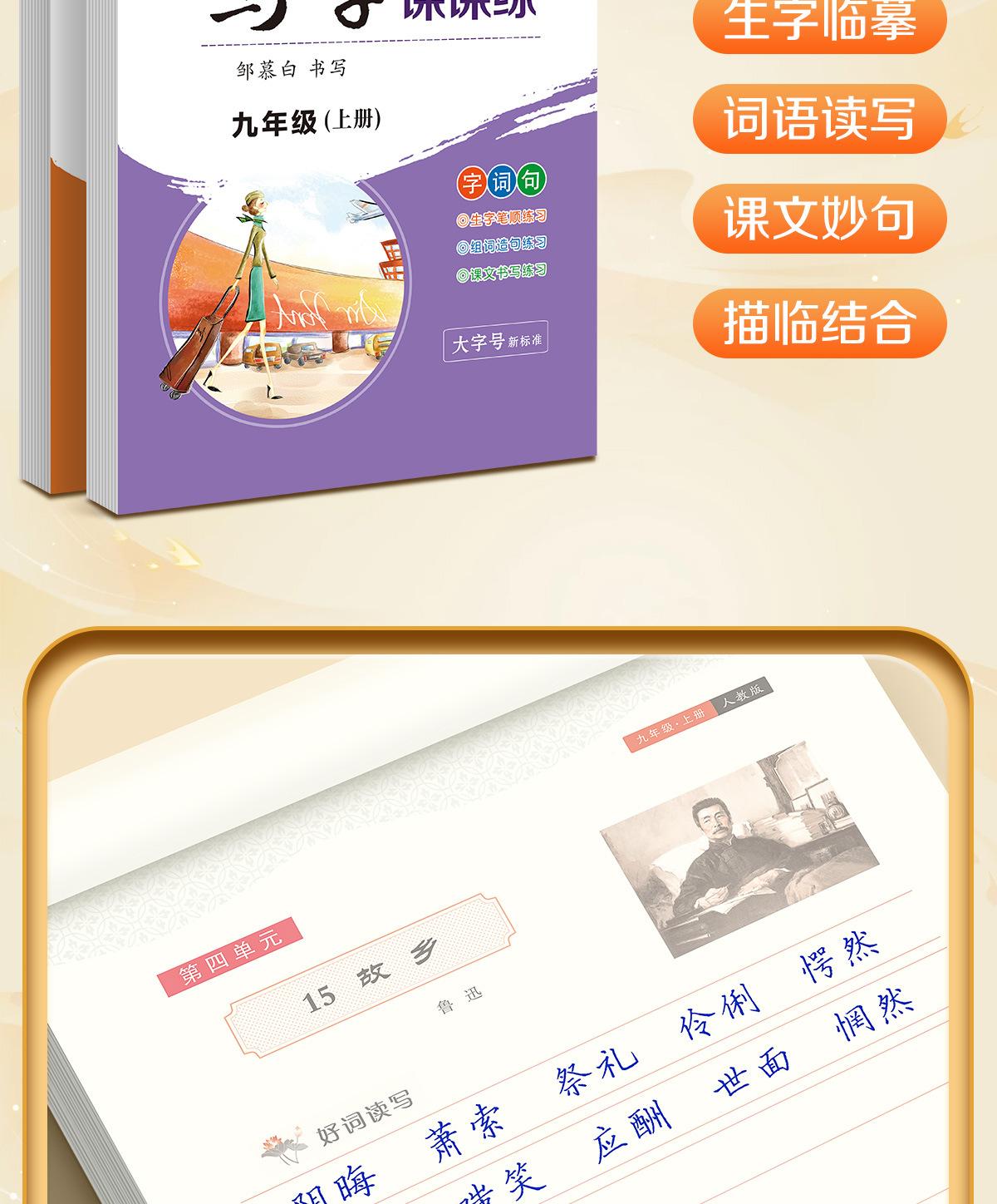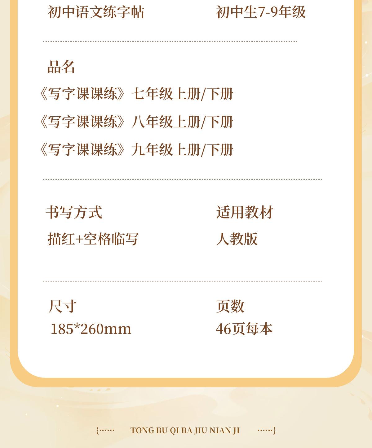 Zou Mubai Edición Educación Popular grados 7-9 Cuaderno de caligrafía chino clase de escritura Inglés Cuerpo Hengshui cuaderno de caligrafía síncrono