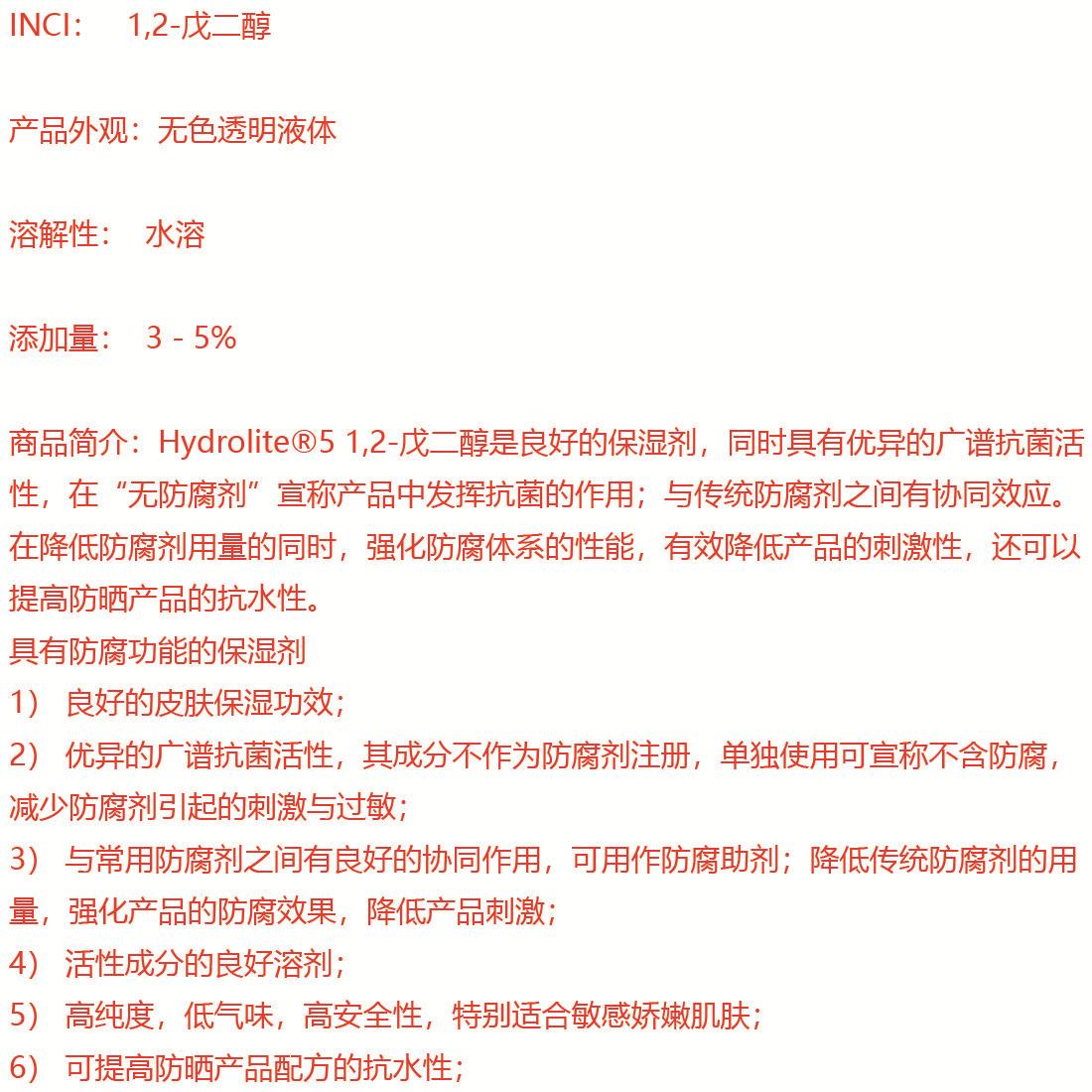 Ventaja del suministro alemán Shumei 1,2 pentanodiol, agente antiséptico hidratante, materias primas cosméticas
