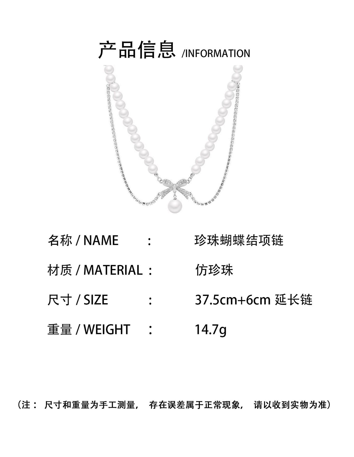 Compra Collar francés de doble capa con perlas y lazo para mujer, elegante y ligero, de lujo, con cadena de clavícula y diamantes brillantes. al por mayor en Joom.pro