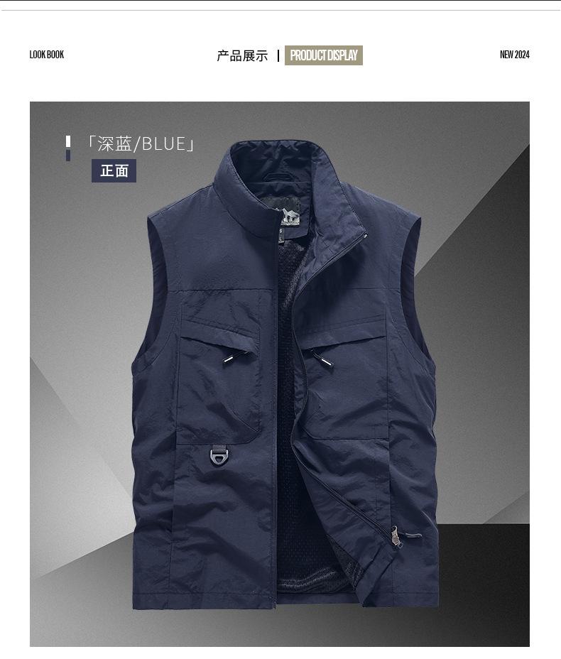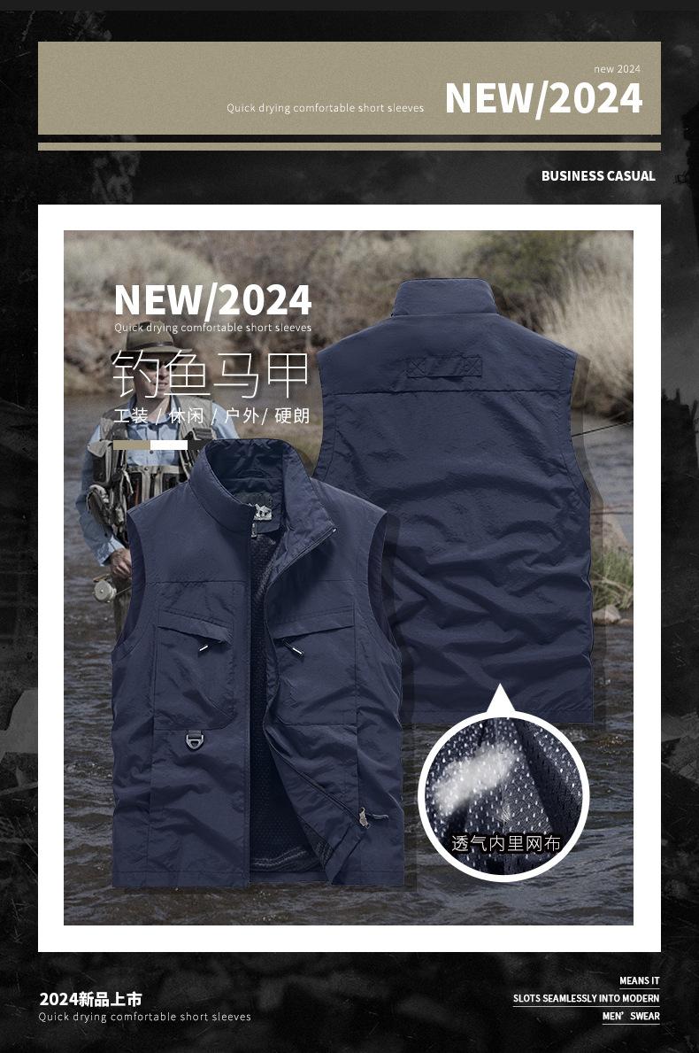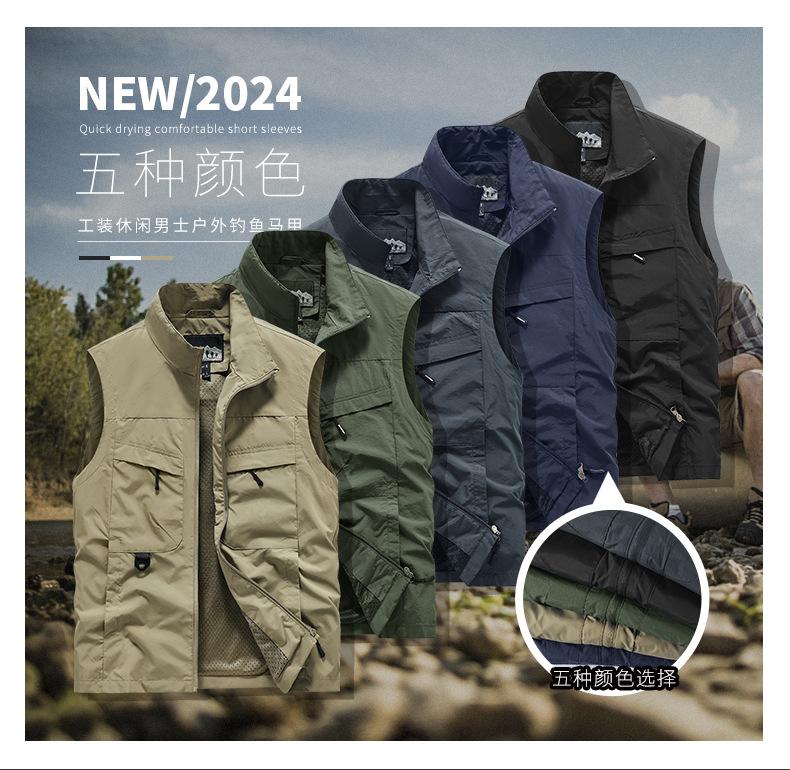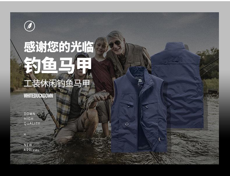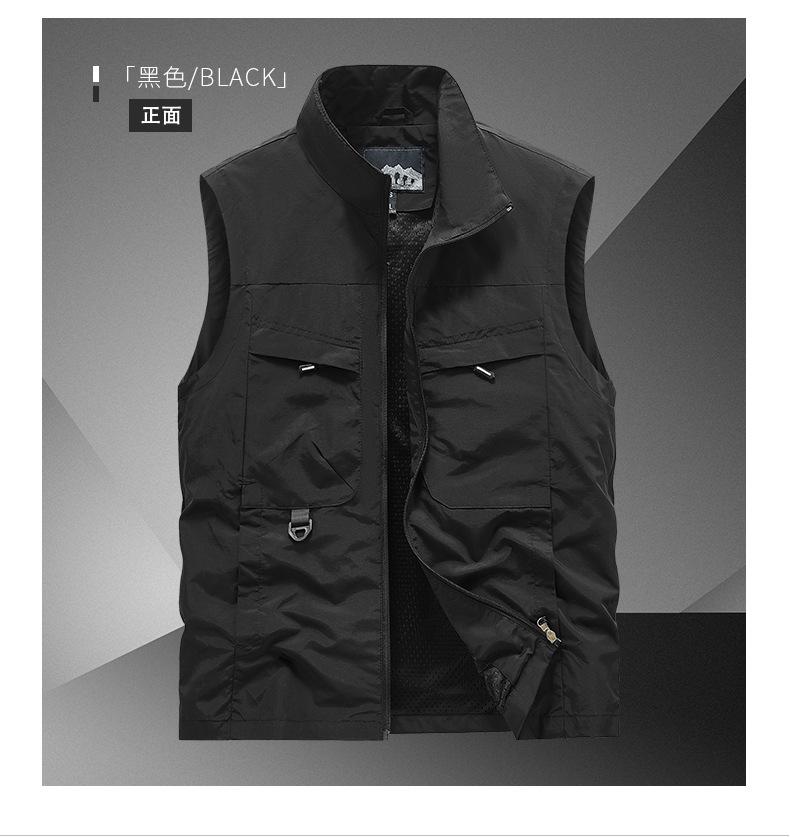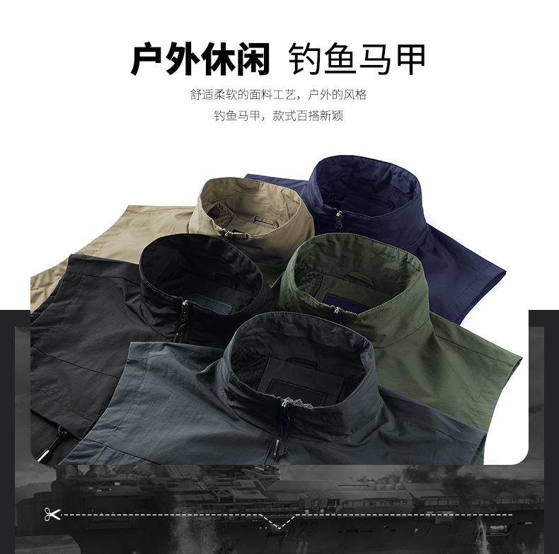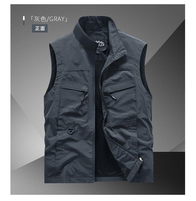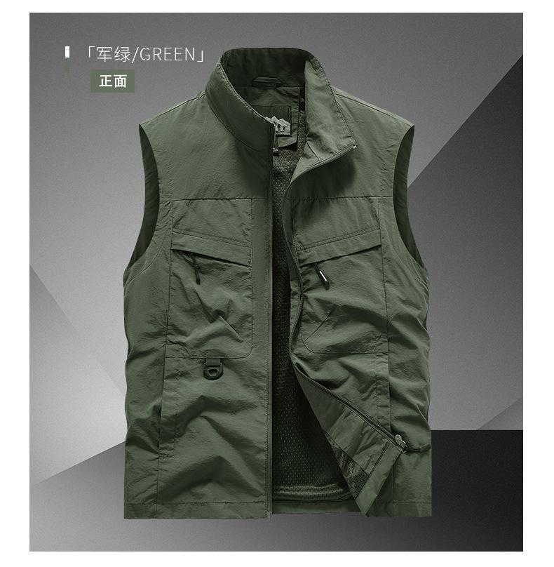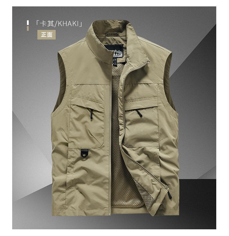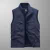 Chaleco para hombre de mediana edad y jóvenes de las Cuatro Estaciones sin mangas con cuello alto multibolsillos de secado rápido chaleco impermeable de pesca de talla grande transfronterizo