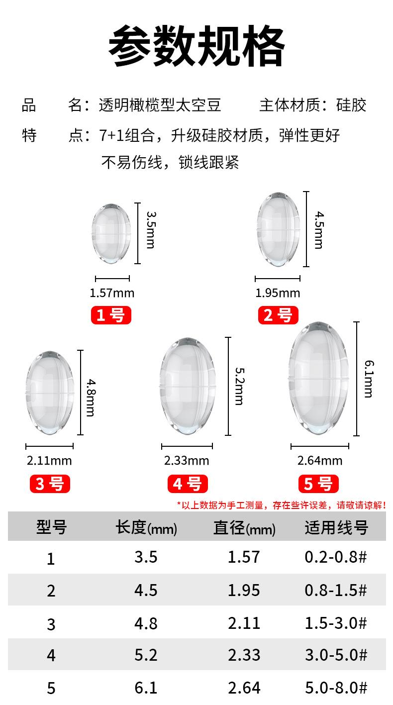 7+1 Frijol Espacial Transparente Silicona Forma de Oliva Varilla Frijol Ligeramente Bloqueado Cuenta a Granel Bloqueo Sedal Principal de Pesca Juego Accesorios Equipo de Pesca