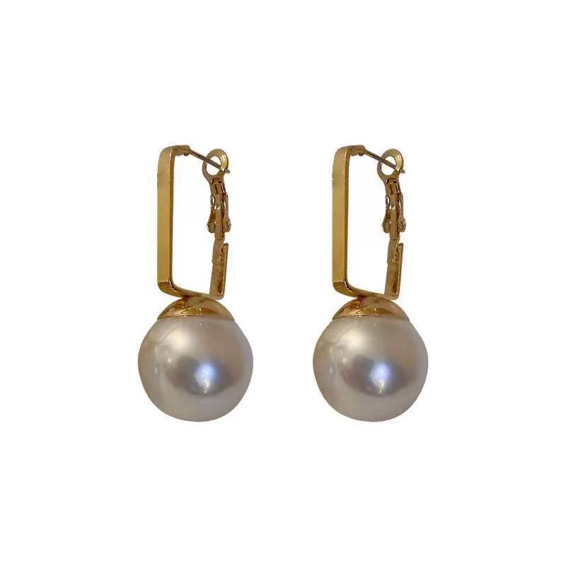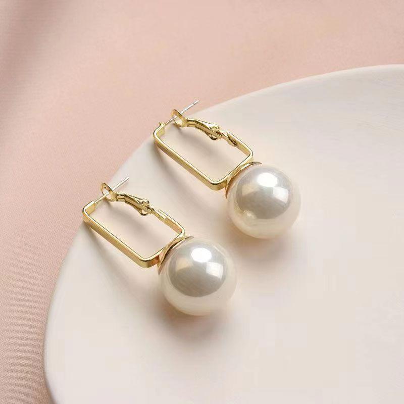 Pendientes colgantes de perlas geométricas de Corea del Sur, elegantes y a la moda, para mujer, con temperamento rojo, personalidad fría y moderna.