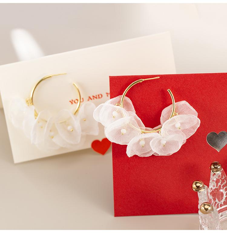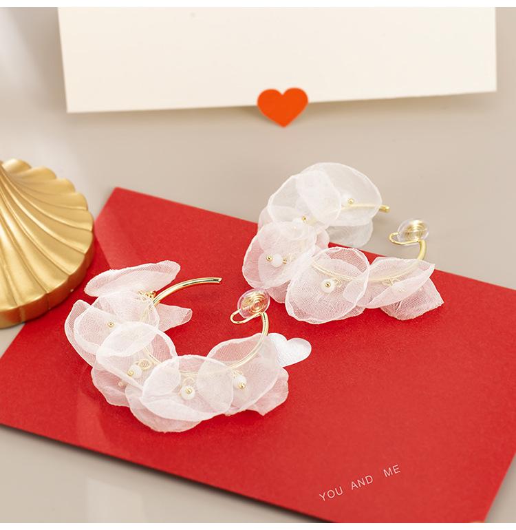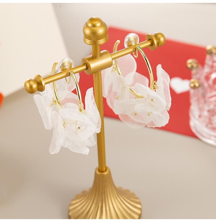 Pendientes exagerados de gasa blanca de súper hada, elegantes, a la moda, combinables, ligeros, de lujo, de alta calidad, con clip para las orejas con espiral antimosquitos sin perforaciones.