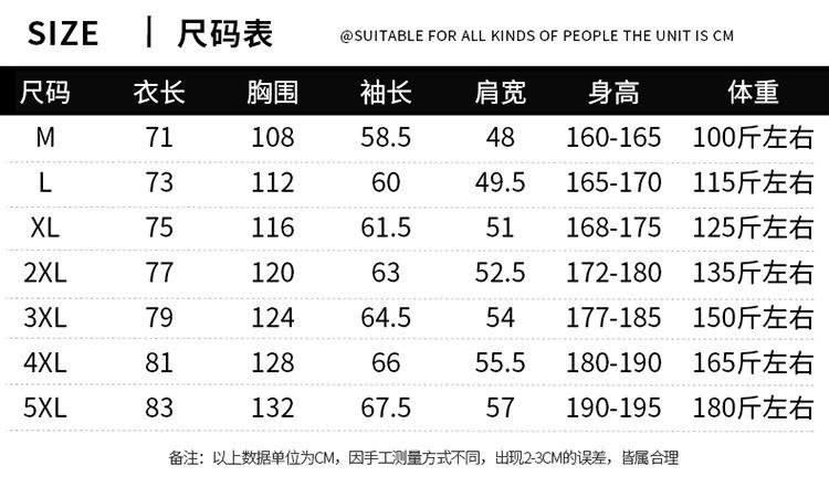 M, L, XL, 2XL, 3XL, 4XL, 5XL