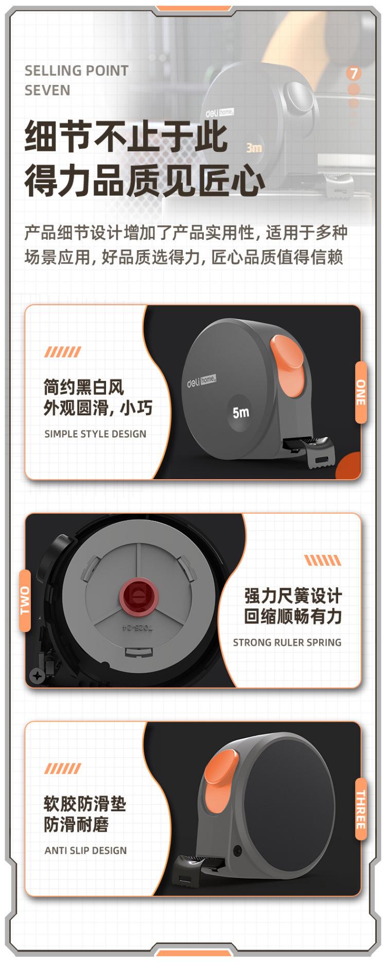 Cinta métrica portátil mini, resistente al desgaste y engrosada, regla de medición impermeable Deli 8316 genuina, cinta de acero antideslizante de 3 m y 5 m