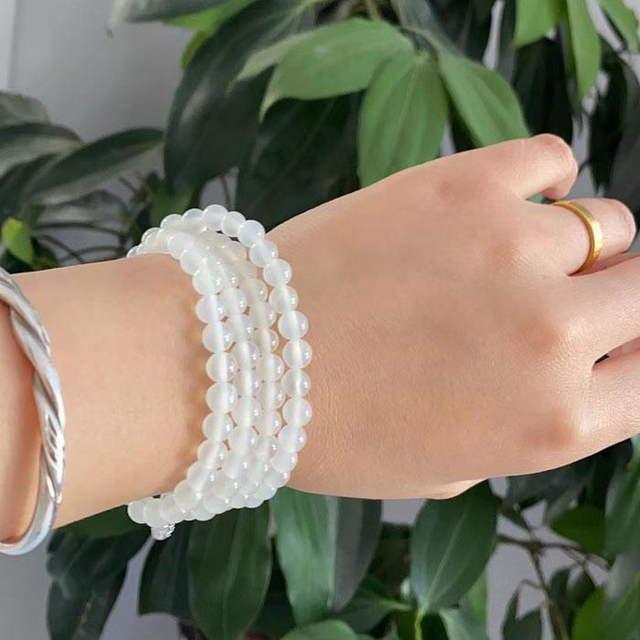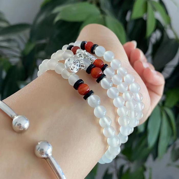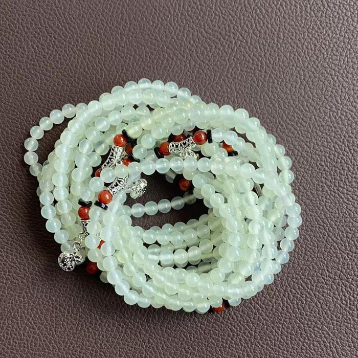 Jade natural 108 6MM pulsera multicírculo jade hielo blanco accesorios de pulsera plata tibetana ágata