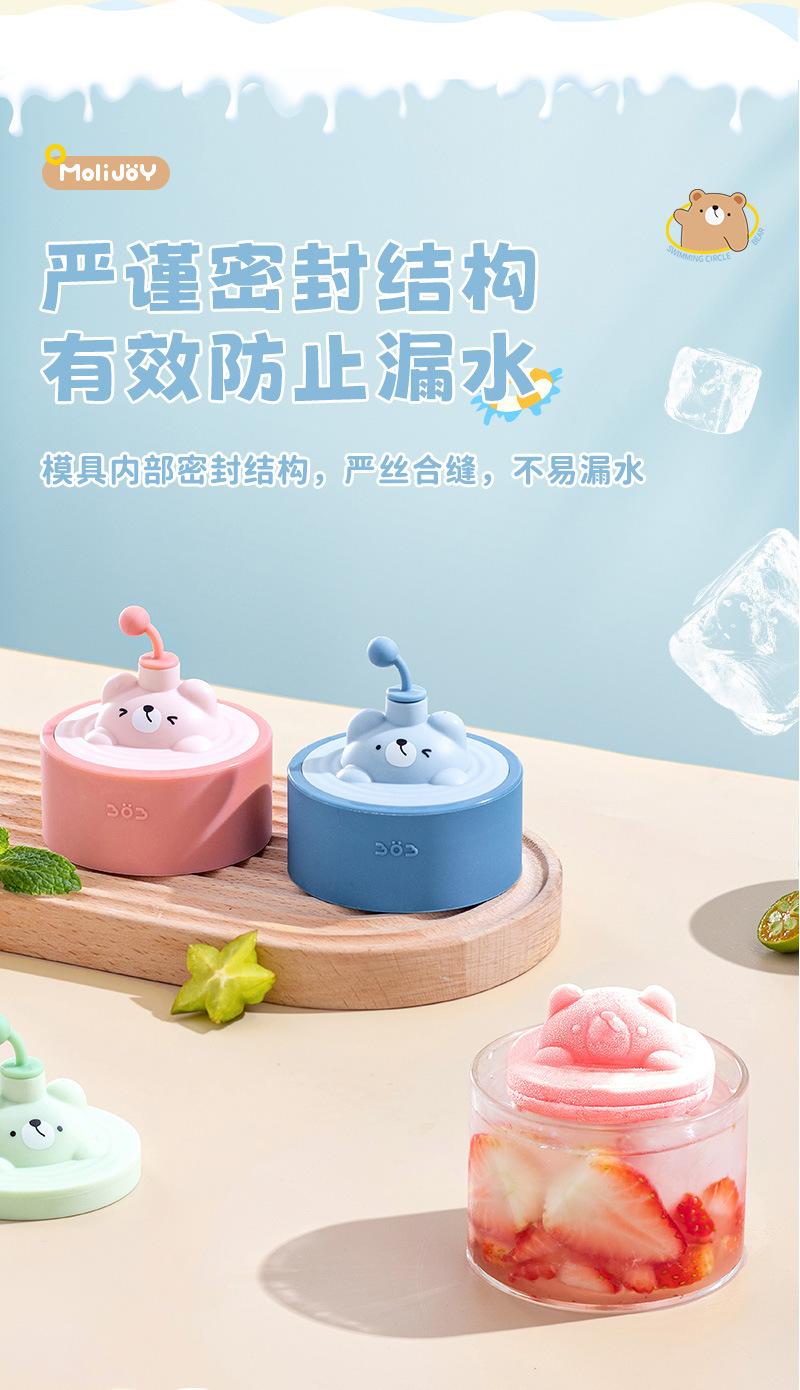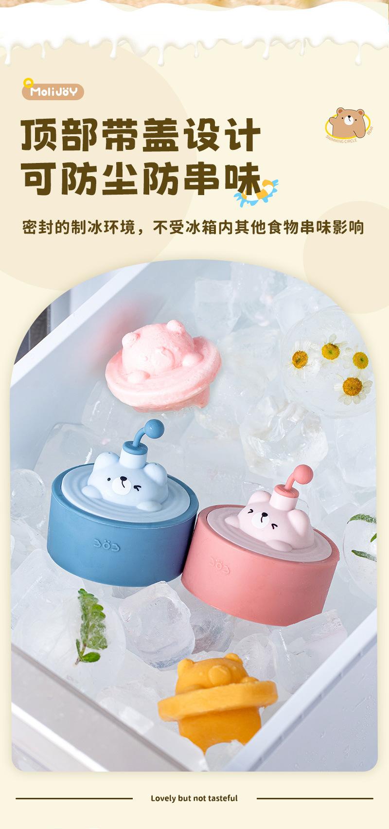 Molde para cubitos de hielo de oso, bandeja de hielo congelado, caja de hielo de silicona, suplemento alimenticio de grado alimenticio, refrigerador, artefacto de almacenamiento doméstico congelado con tapa