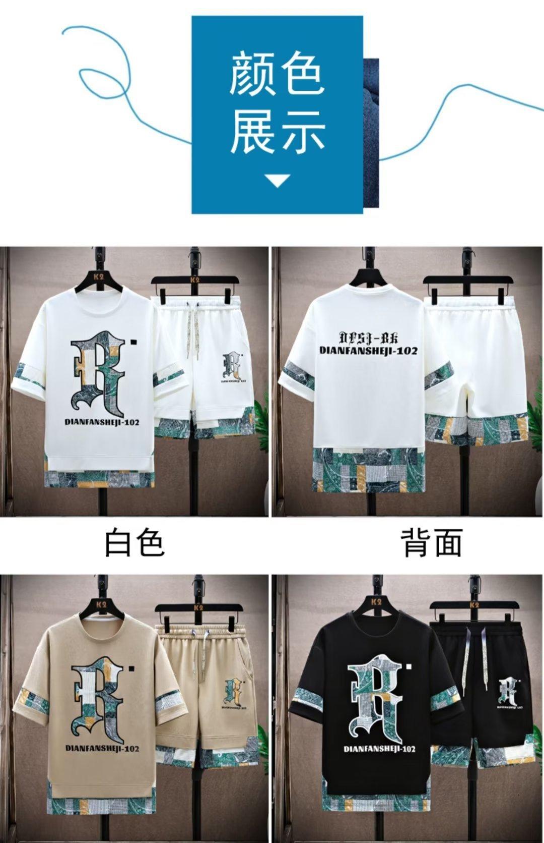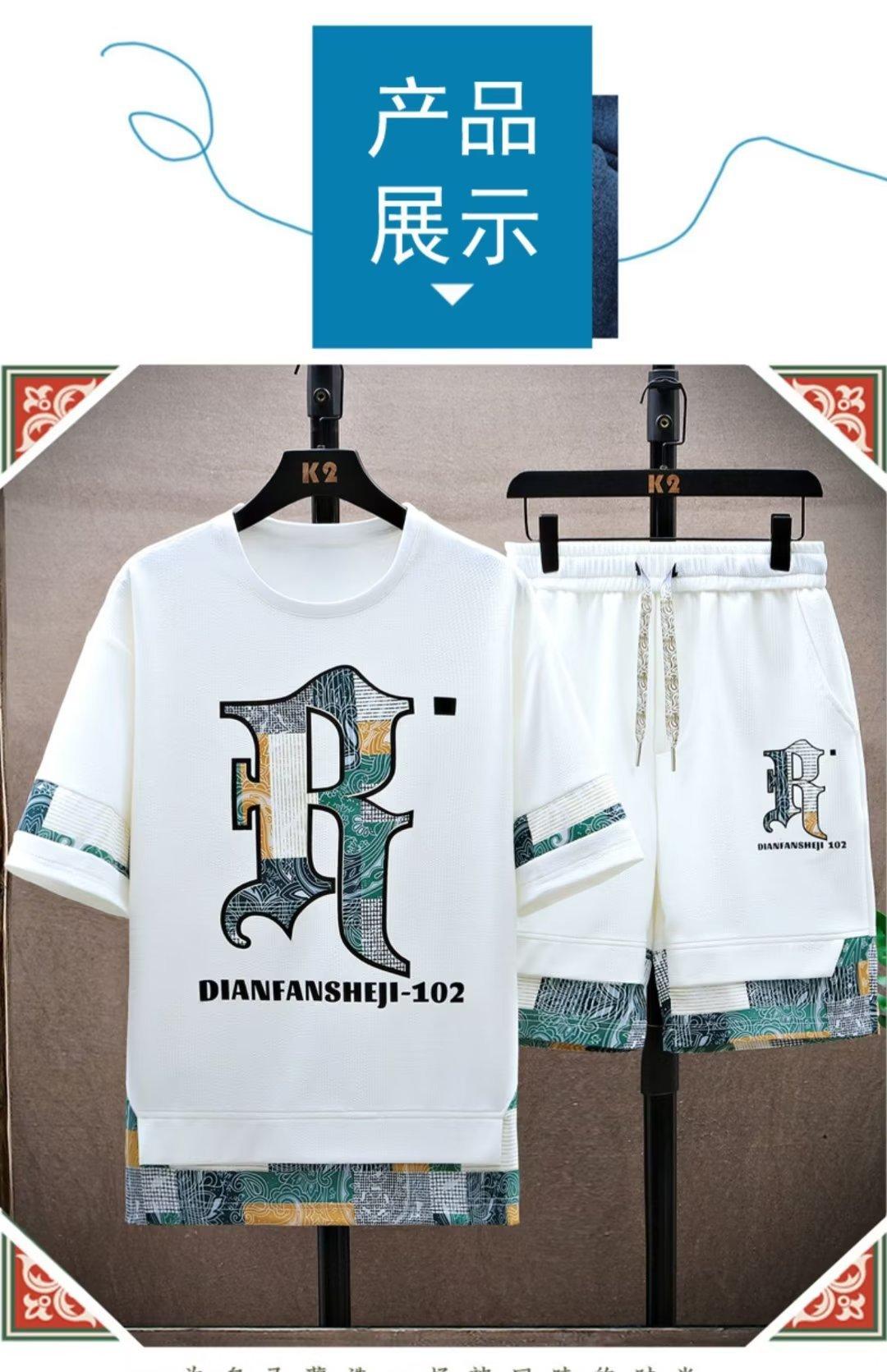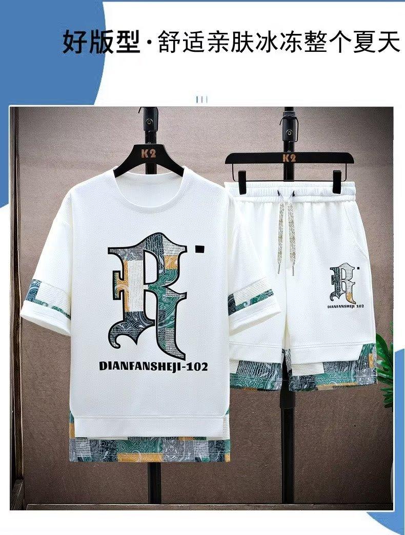 Traje deportivo informal de marca de moda para hombre, traje de verano falso de dos piezas de manga corta para hombre con ropa de estudiante de moda atractiva