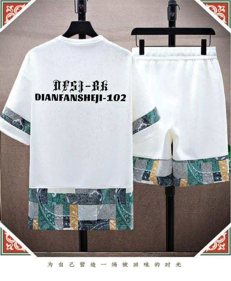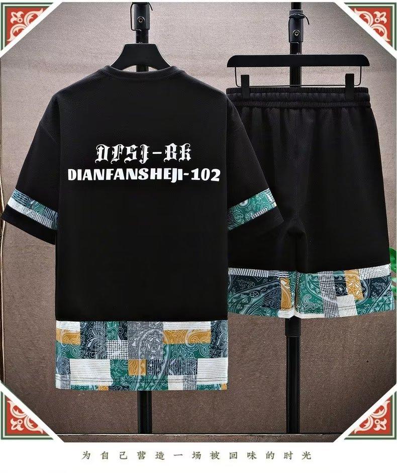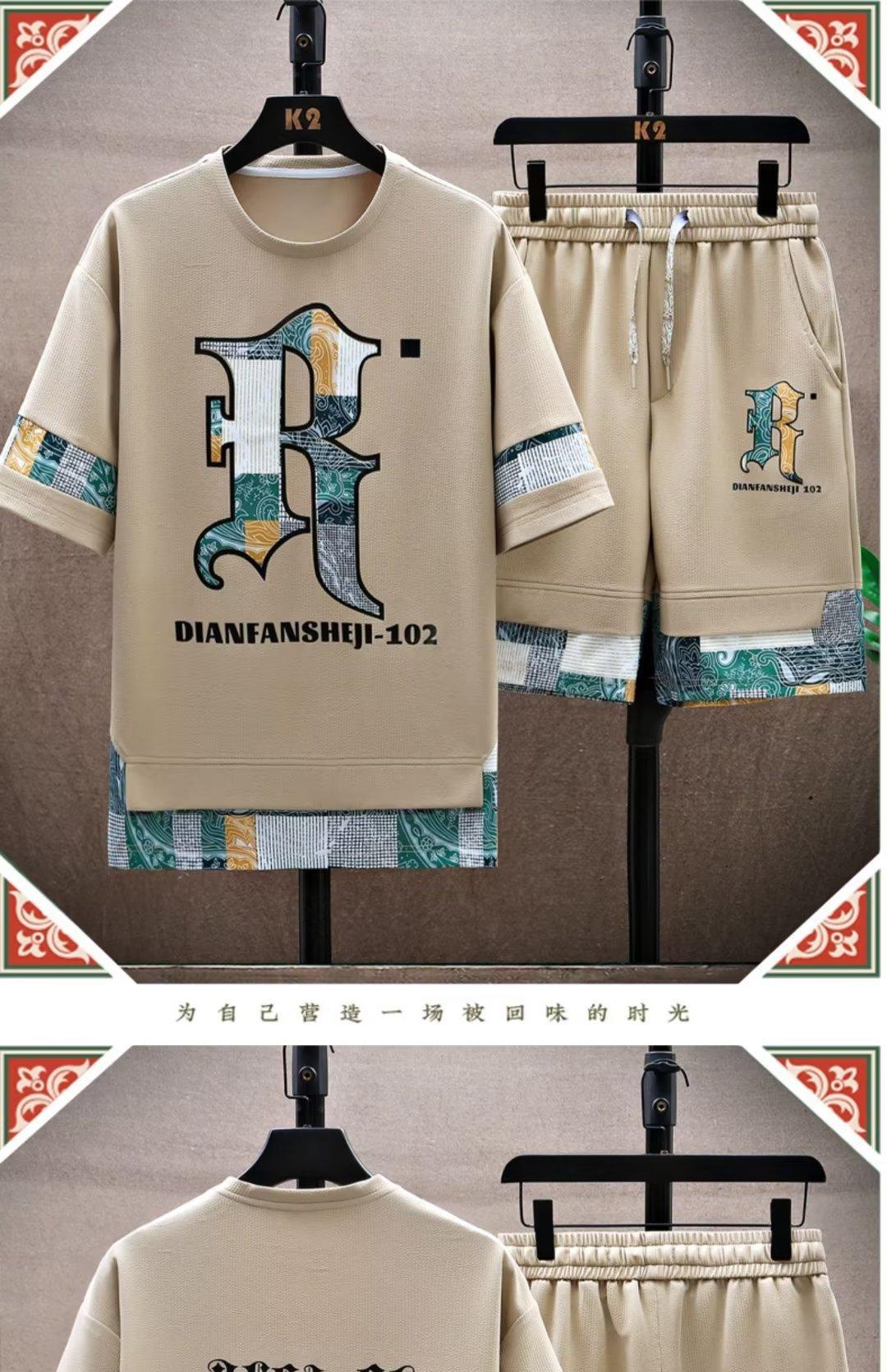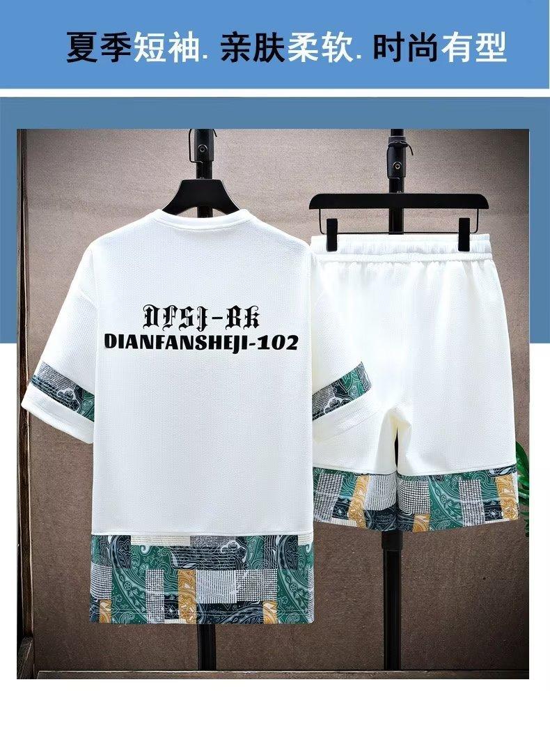 Traje deportivo informal de marca de moda para hombre, traje de verano falso de dos piezas de manga corta para hombre con ropa de estudiante de moda atractiva