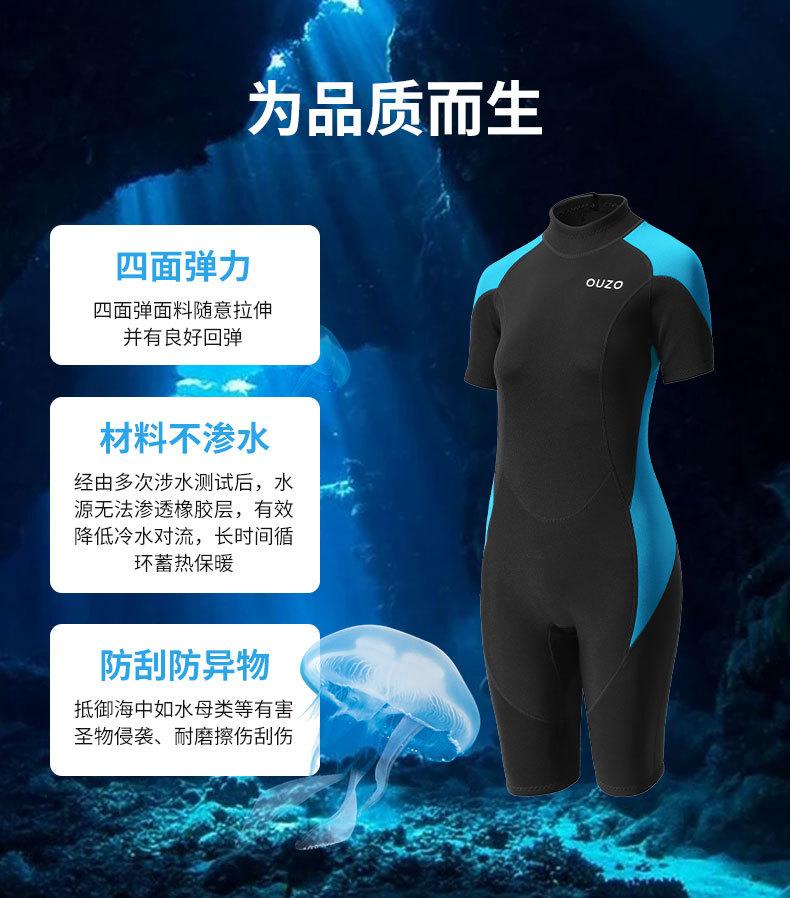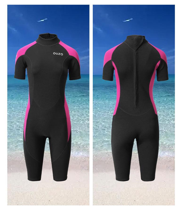 Traje de buceo de una pieza de manga corta para mujer OUZO de 1.5 mm para protección solar, calor, surf, esnórquel, buceo profundo, traje de buceo para nadar