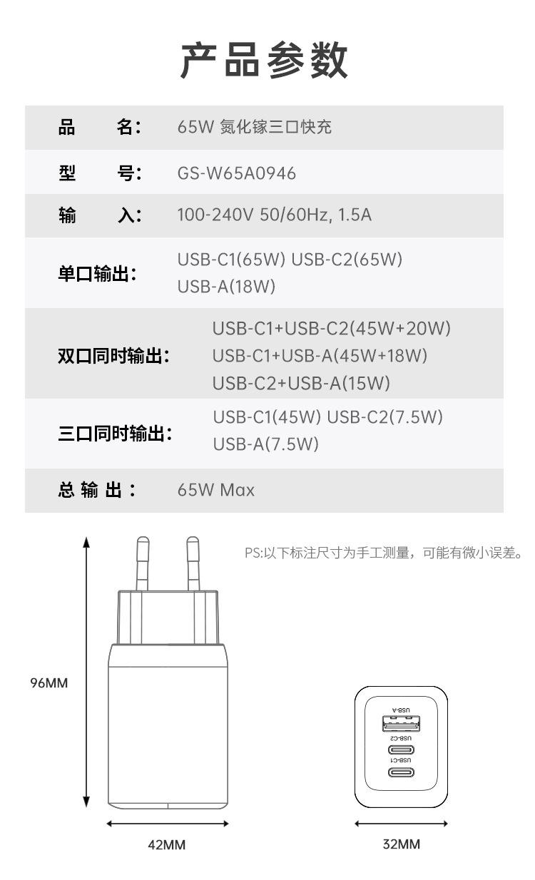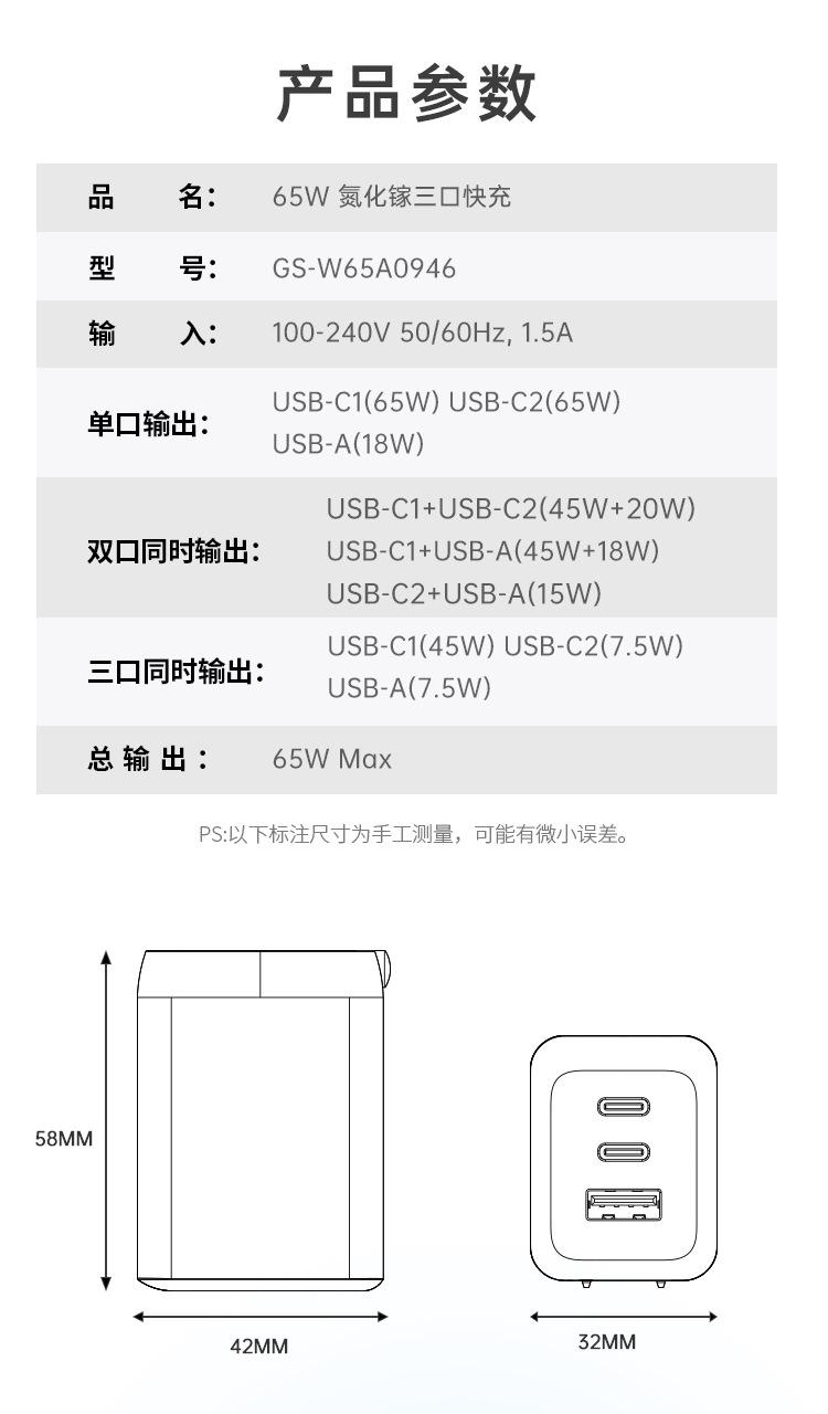 Nombre del producto: Cargador de carga rápida PD65W 0946