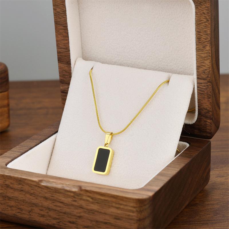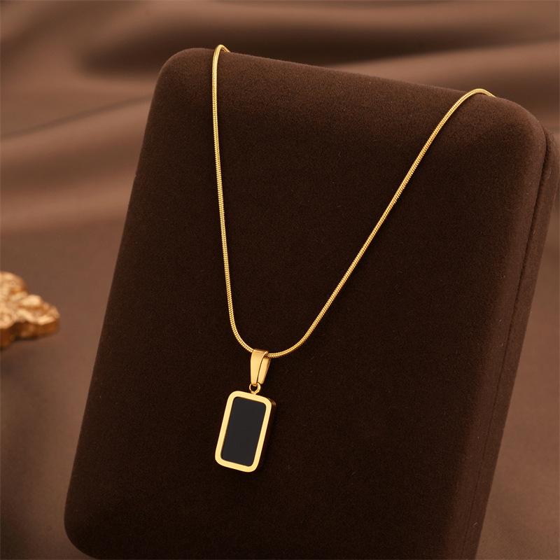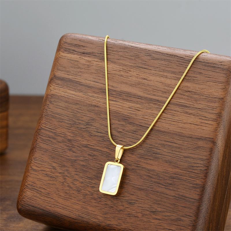 Venta caliente transfronteriza, collar de acero de titanio con colgante de doble cara de concha blanca de marca negra, cadena de clavícula femenina simple a la moda que no se decolora, al por mayor
