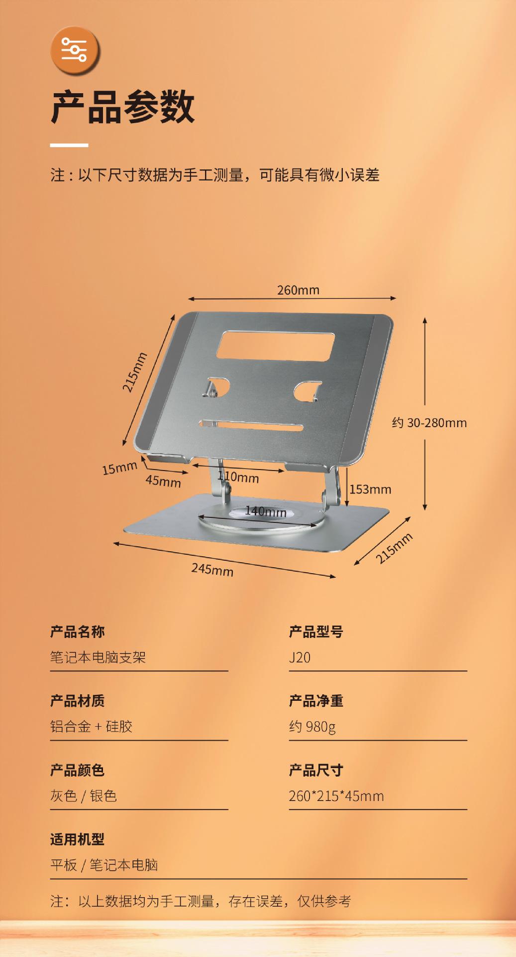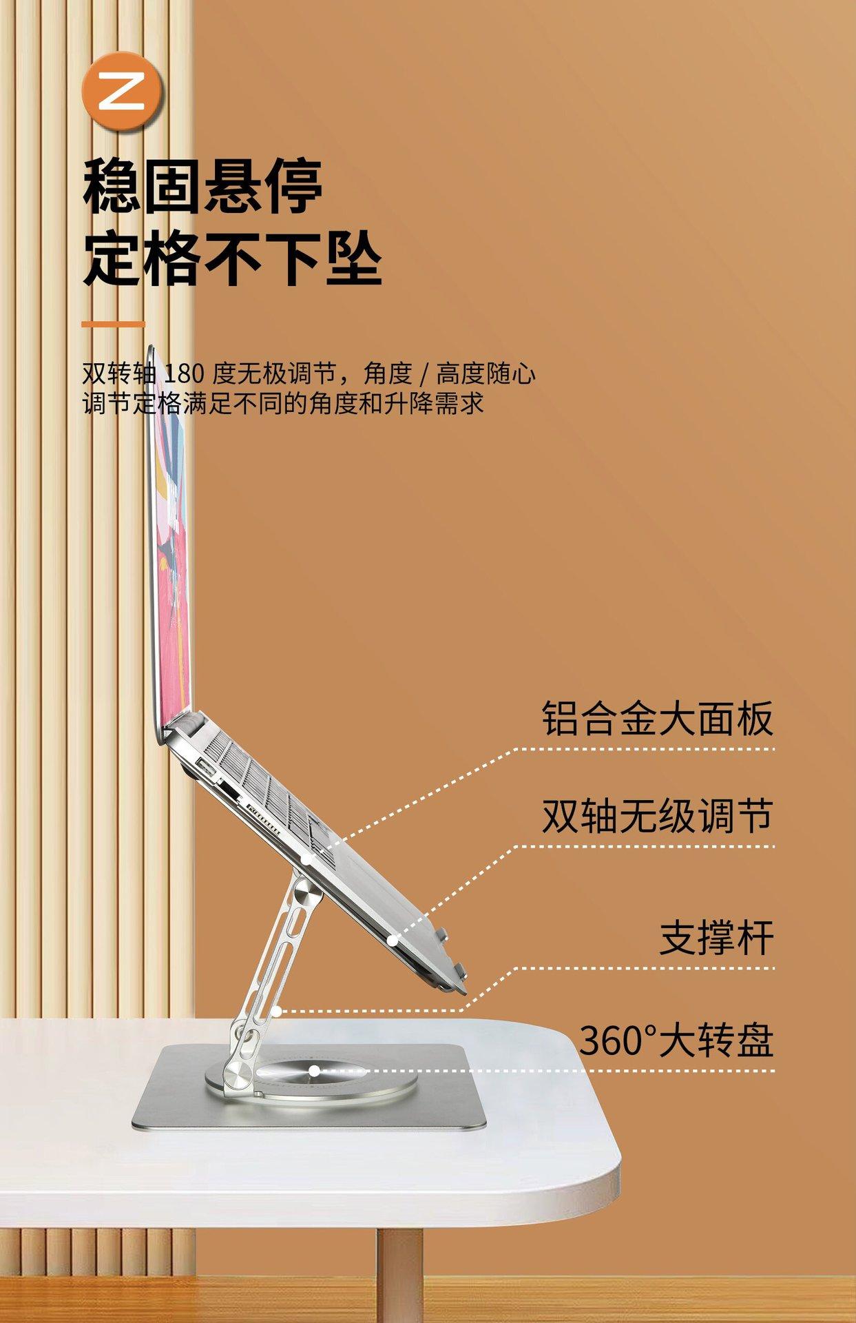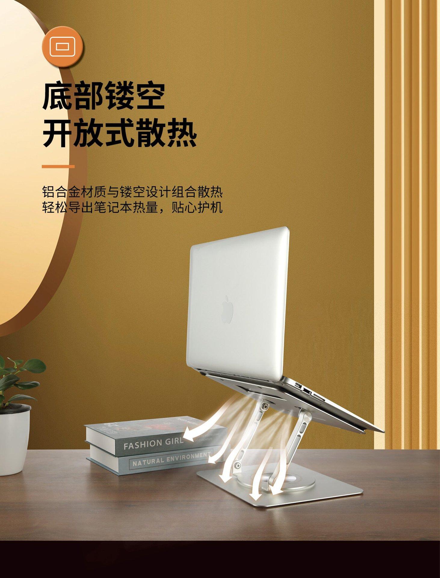 Soporte para portátil de aleación de aluminio para escritorio, con disipación de calor, giratorio, plegable, ajustable, soporte de elevación multifuncional.