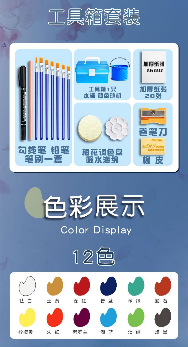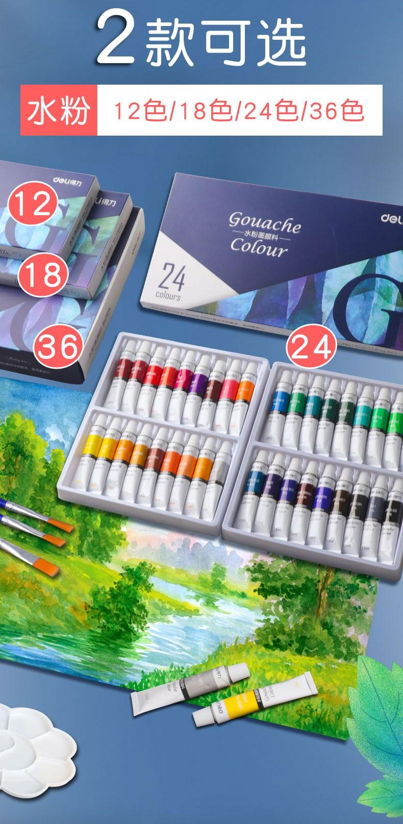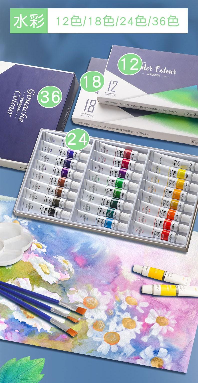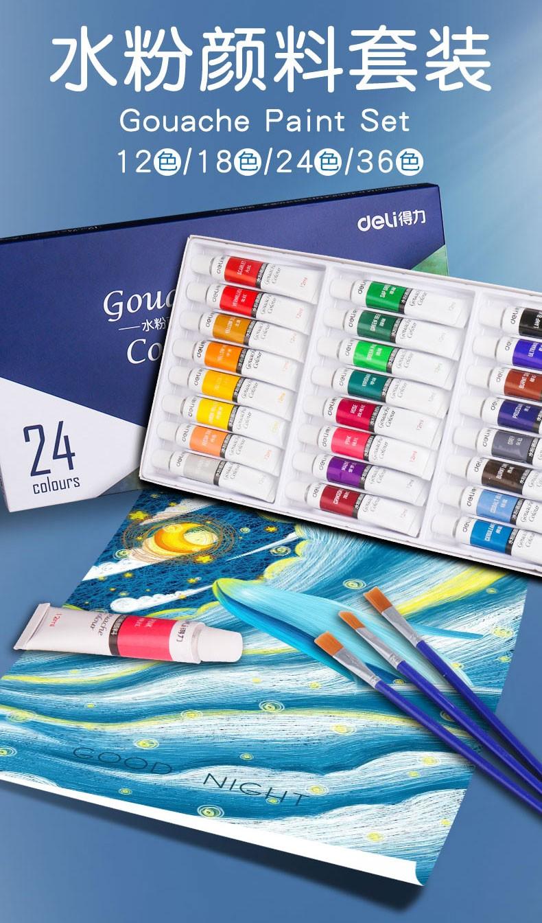 Set de pintura gouache Deli pintura de acuarela portátil al por mayor estudiantes de arte Especial 24 colores 12 colores principiante no tóxico