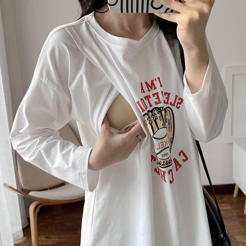 Ropa de maternidad de algodón puro, ropa de lactancia, camiseta de manga larga, longitud media, moda de mamá caliente, top de lactancia de primavera y otoño, posparto