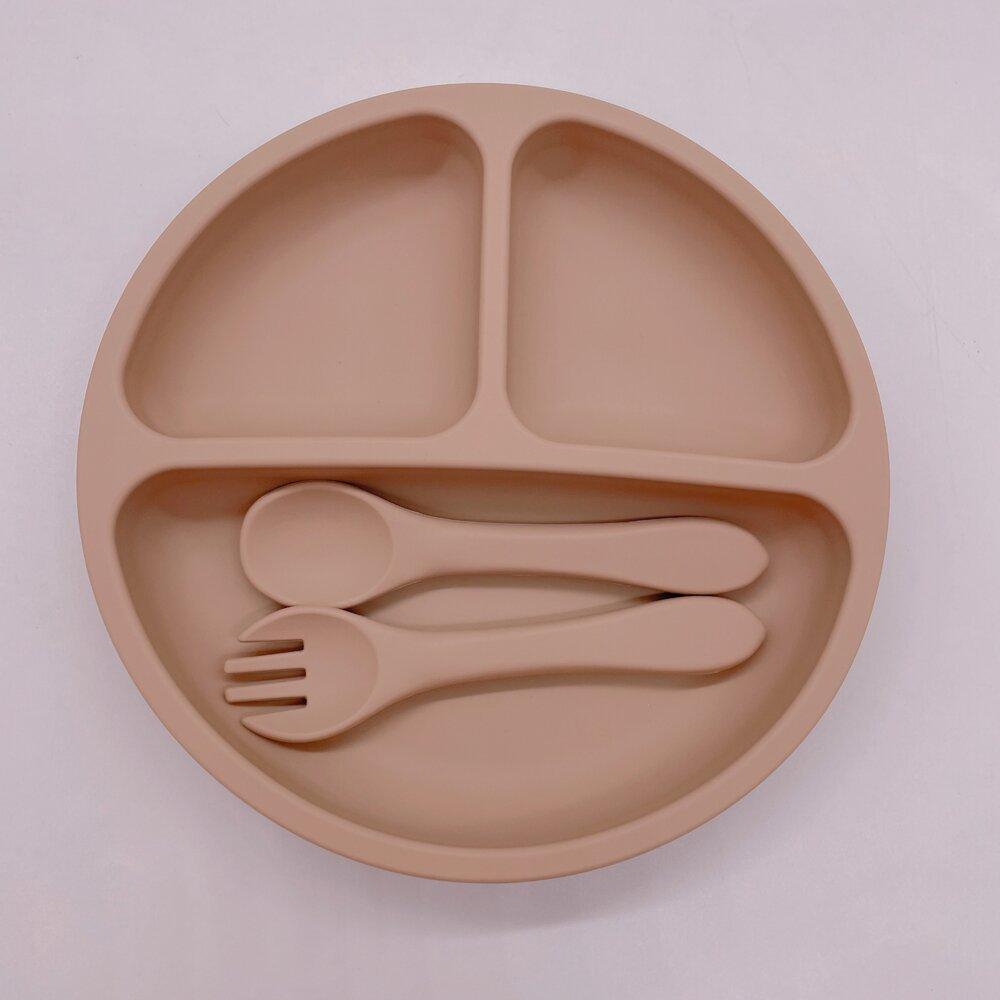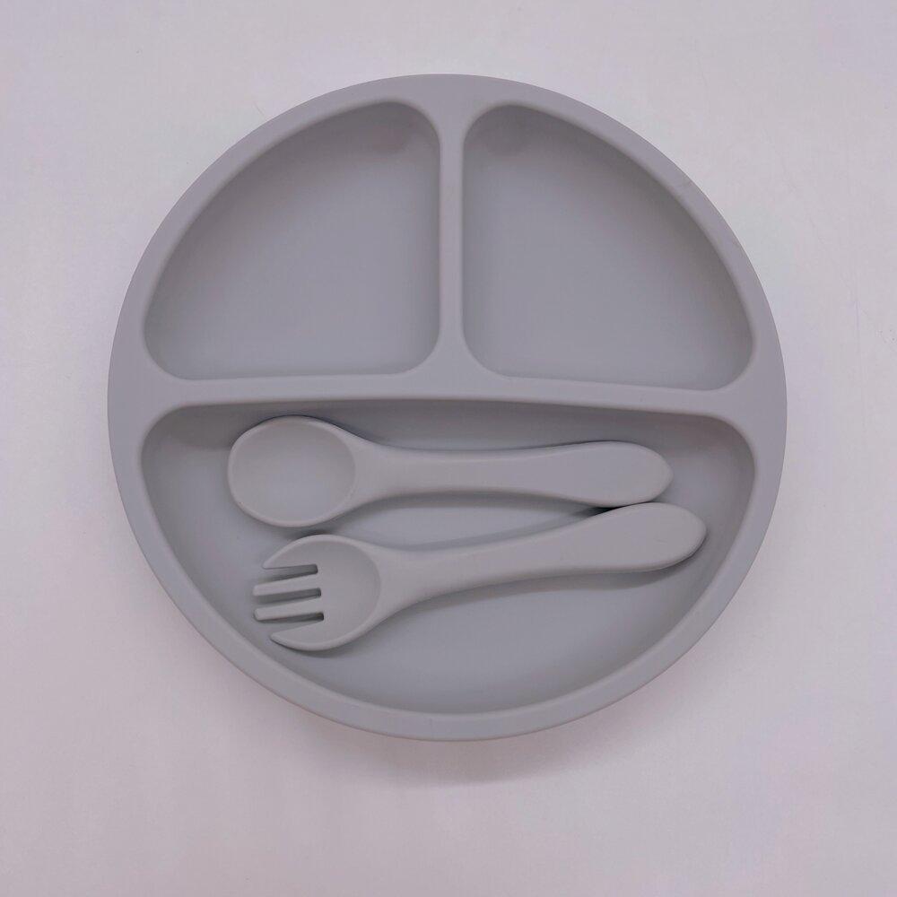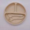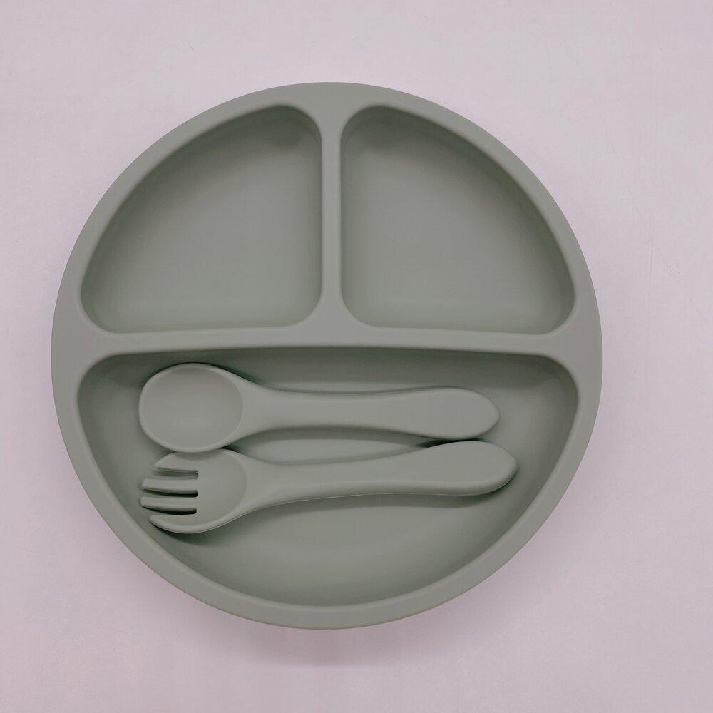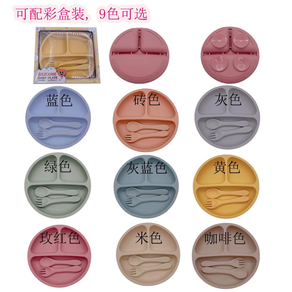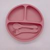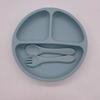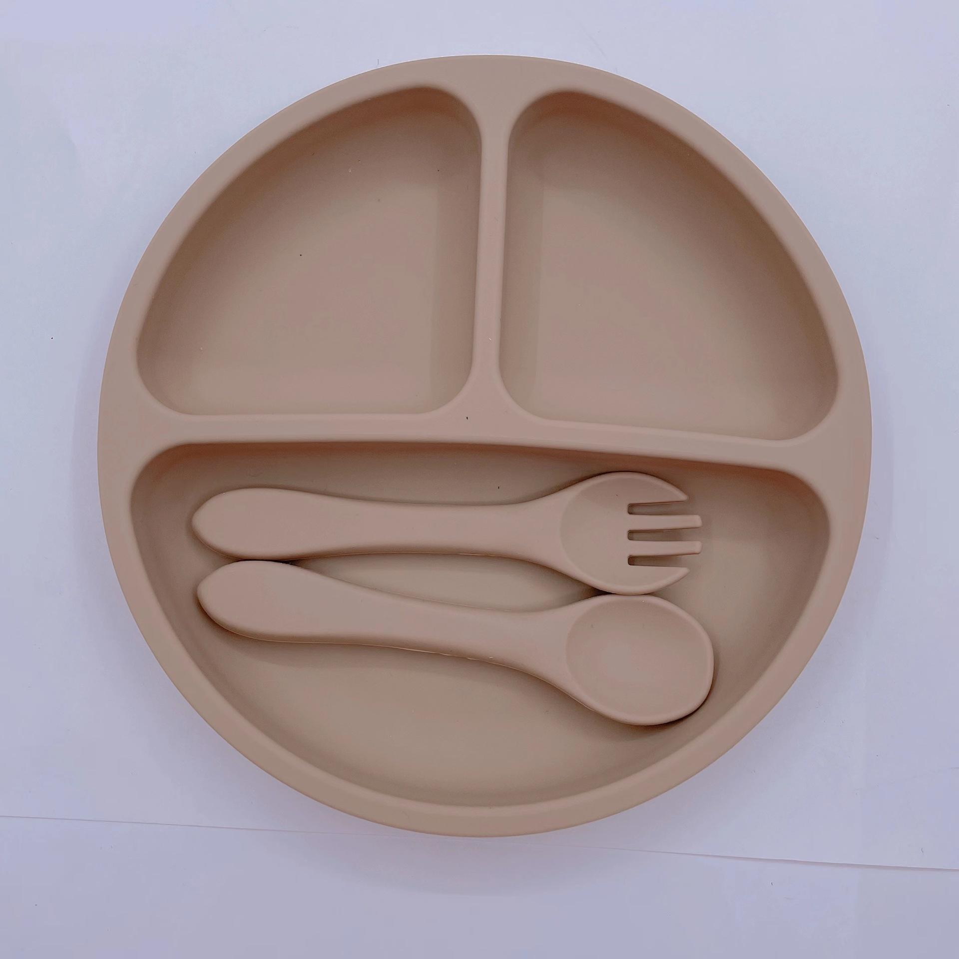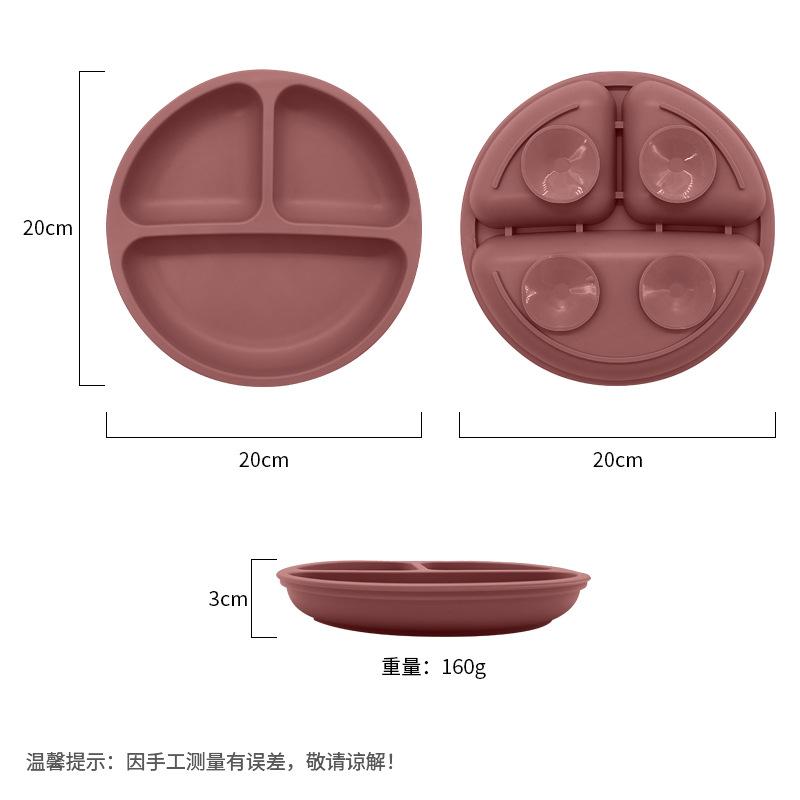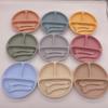 Vajilla de silicona para niños, plato redondo con ventosa y carita sonriente para bebé, plato de tres compartimentos para alimentos complementarios para bebé